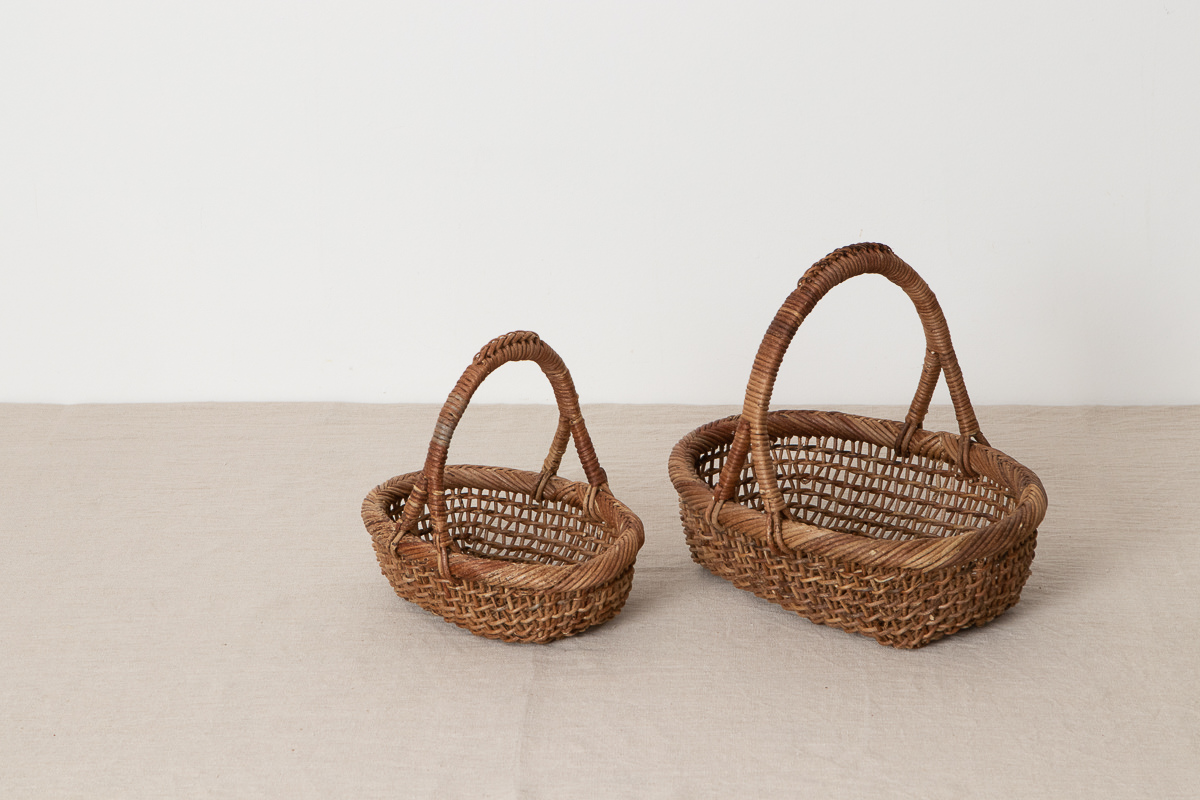 ともに良質な材料のみ厳選して、高い編み技術で多様な形のかごを作り続けています。