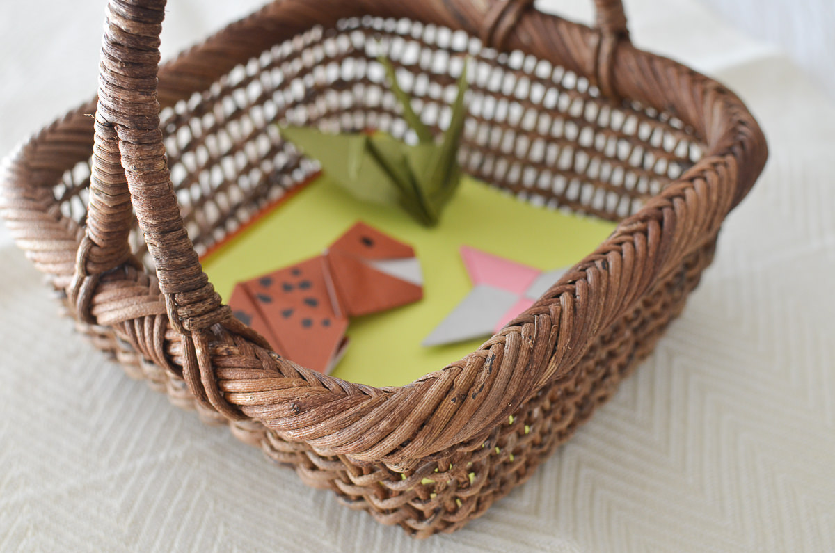 こちらのかごは折り紙を入れるのにジャストサイズです。