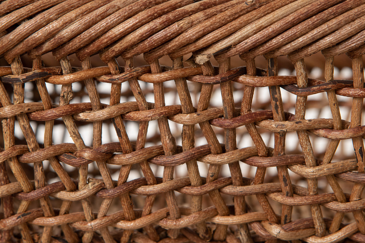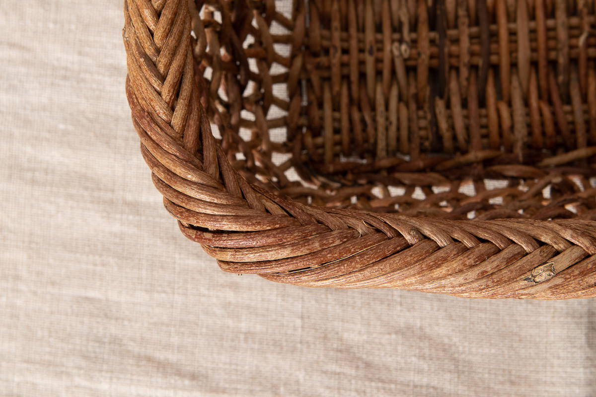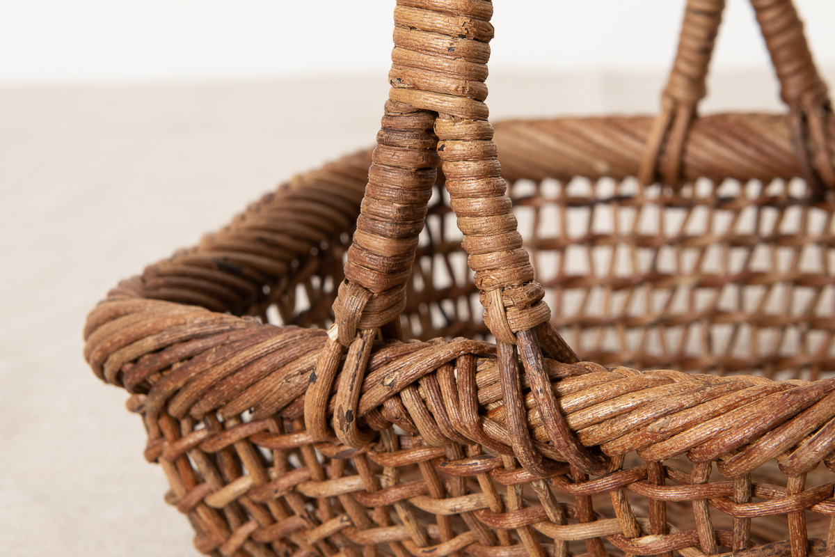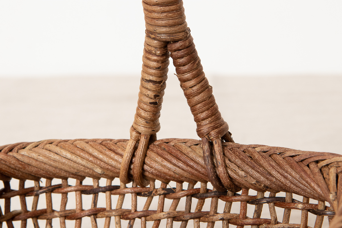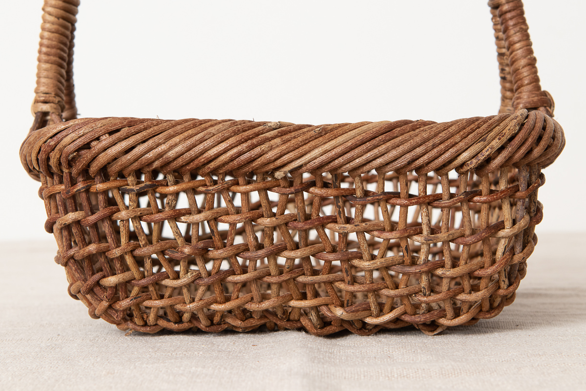 こちらはあけびの蔓で編まれた、持ち手がついたかごです。