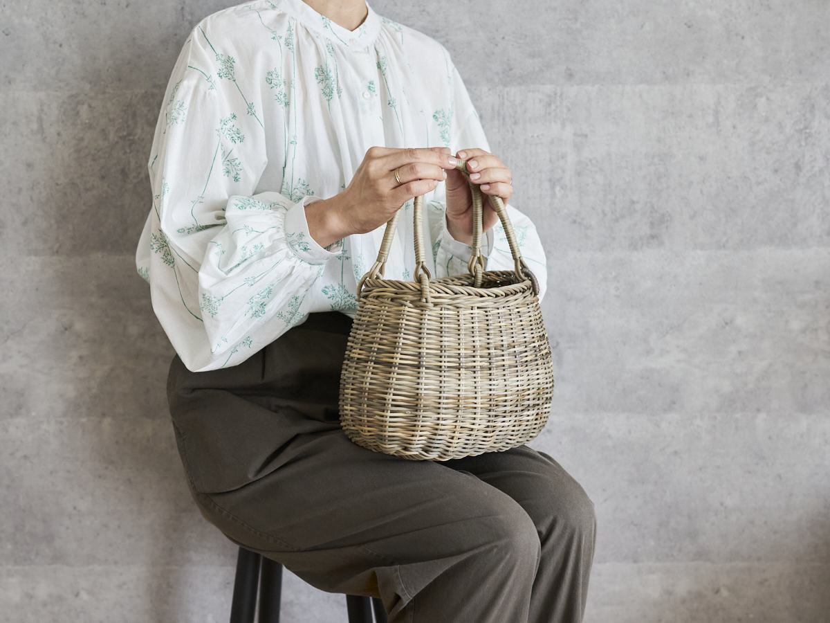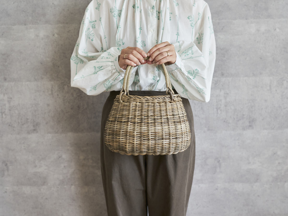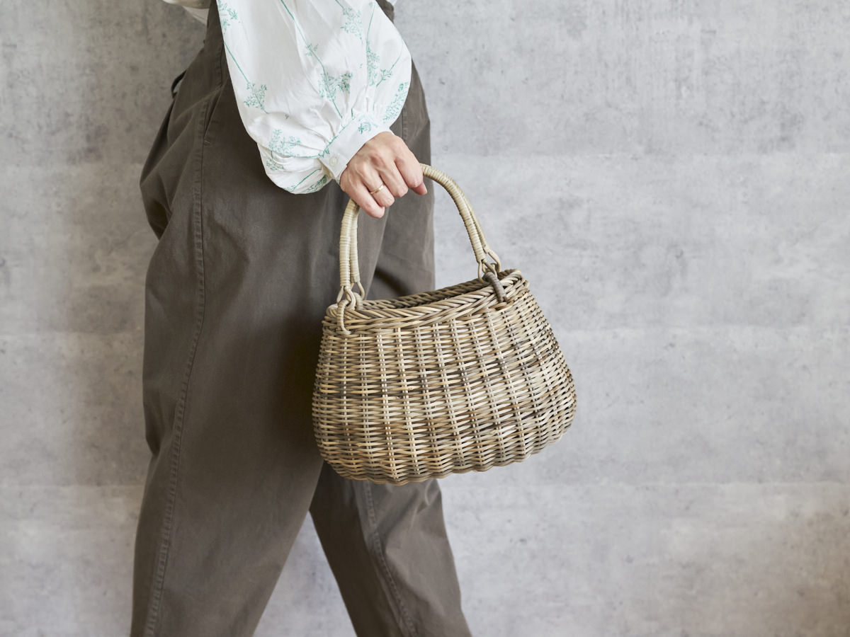 小ぶりでコロンとかわいい、日々持って出掛けたくなる手提げです。