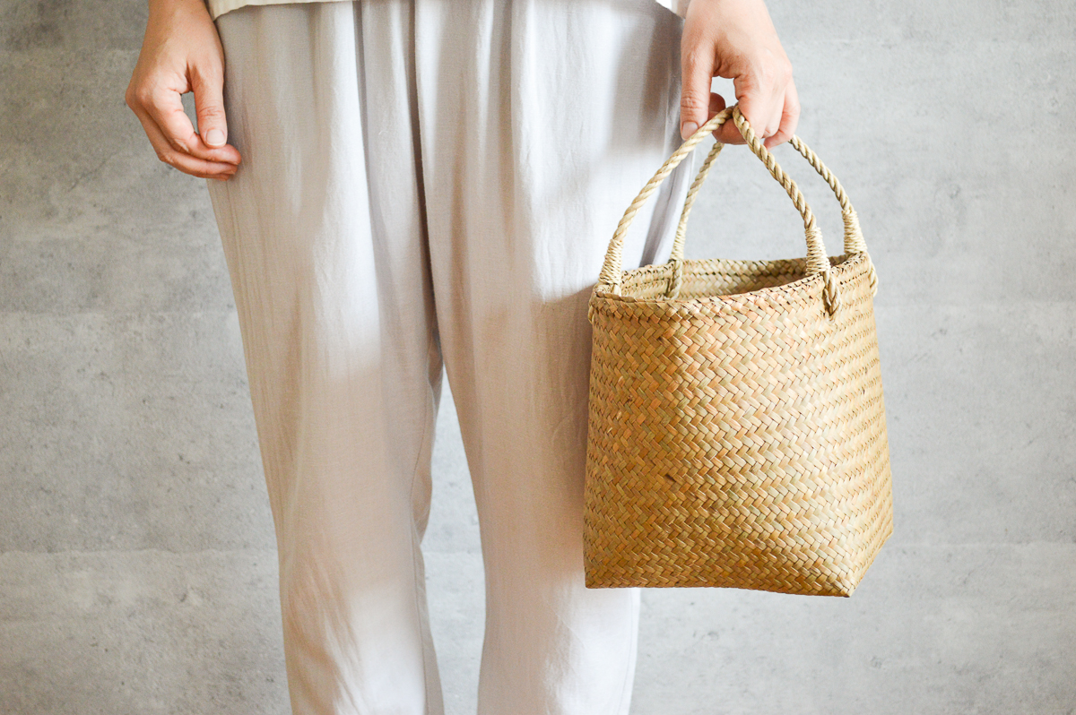 若い世代の編み手が少ないながらも、今、改めてタイ国内でも、こうした自然素材製品の良さが見直され、若い人たちがかごを手に取るようになってきているとのこと。