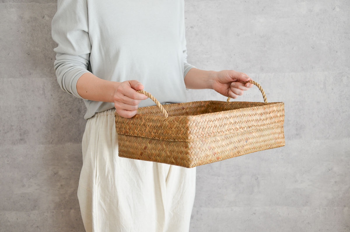 若い世代の編み手が少ないながらも、今、改めてタイ国内でも、こうした自然素材製品の良さが見直され、若い人たちがかごを手に取るようになってきているとのこと。