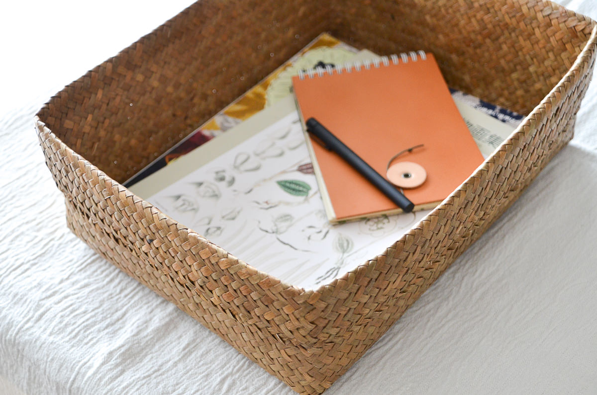 読みかけの雑誌、本やメモ帳などを入れて。