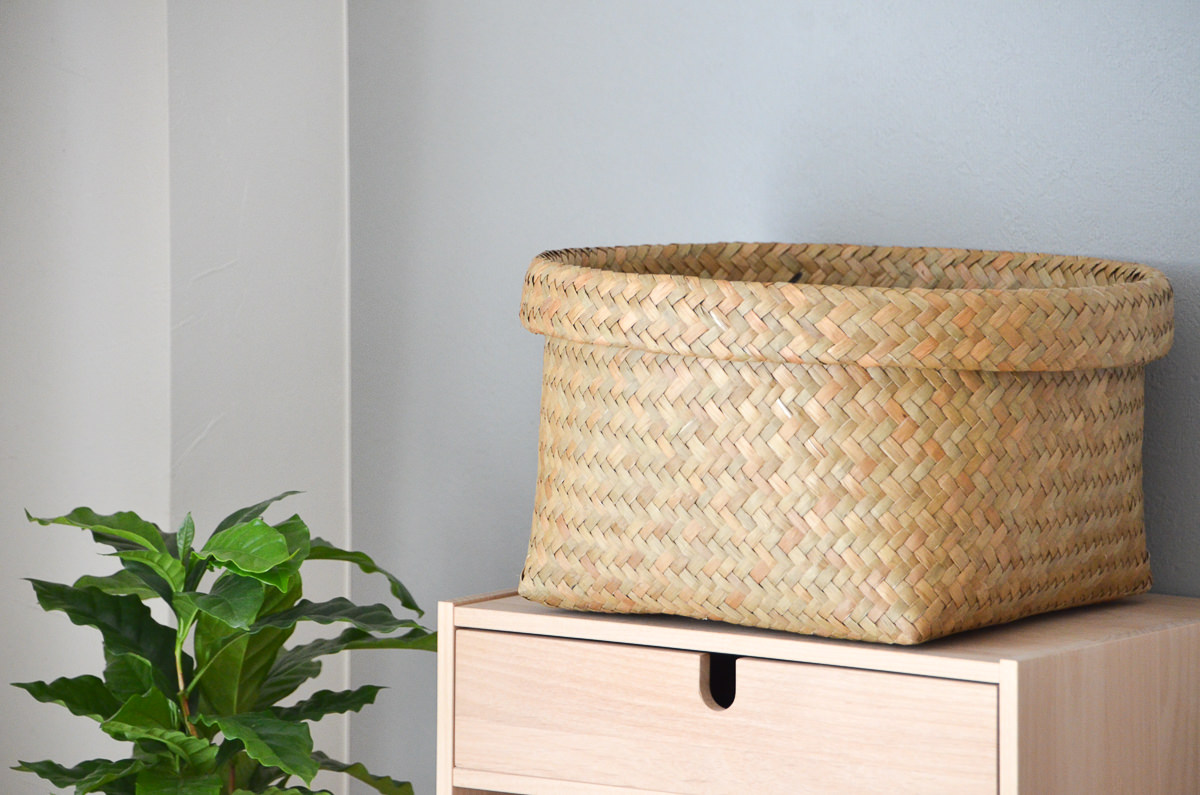 鉢カバーにしたり、おもちゃを入れたり。カチューのかご表面に塗られた糊は、形崩れを防ぎ、