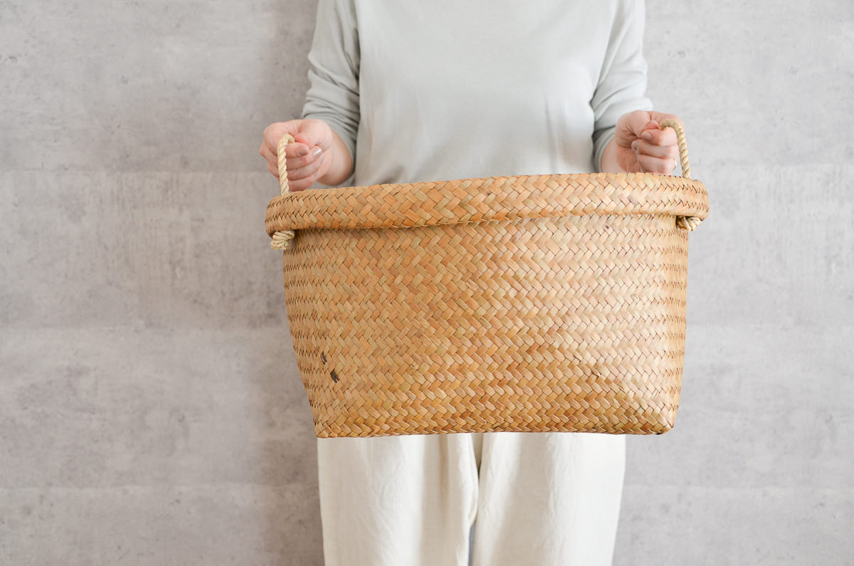 脱衣かごにも良いかと思います。カチューのかご表面に塗られた糊やニスは、形崩れを防ぎ、