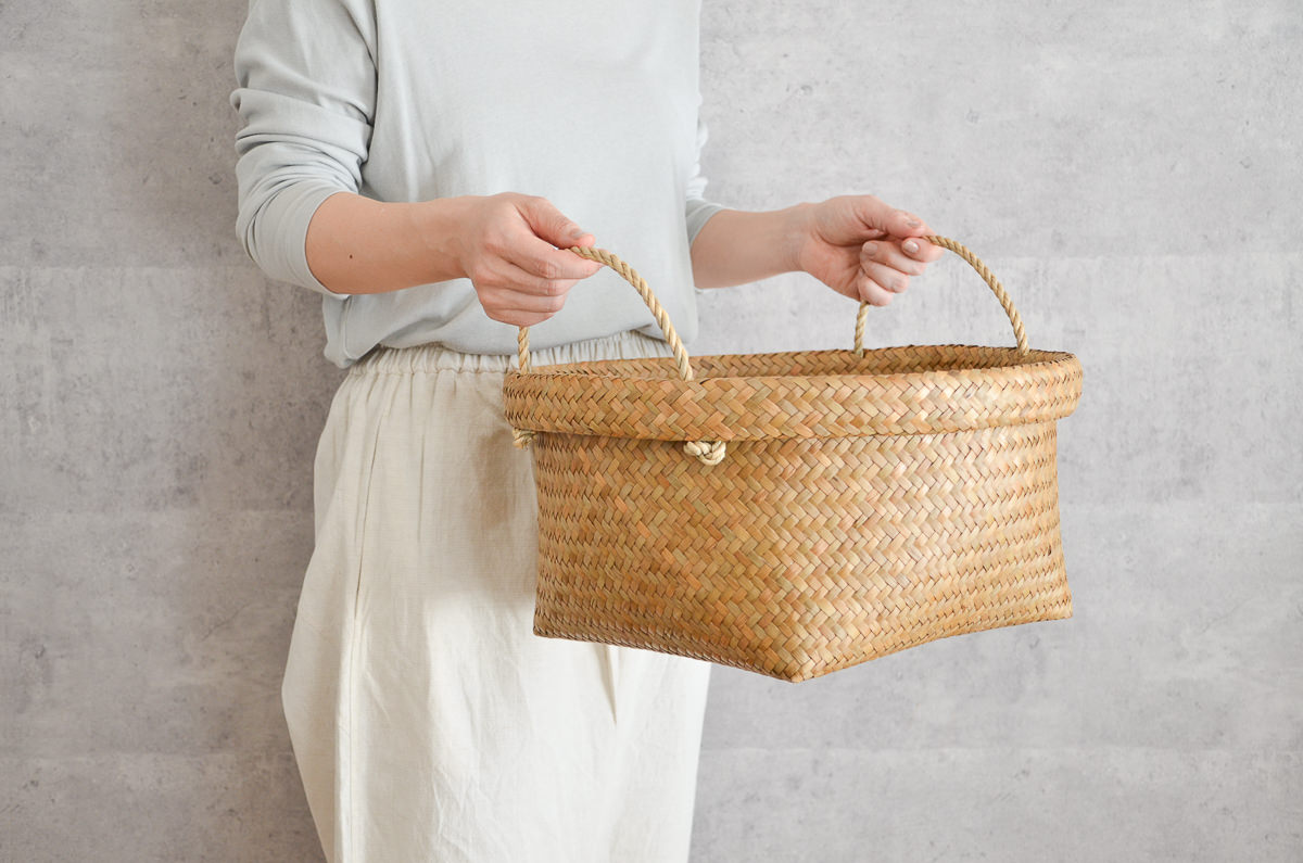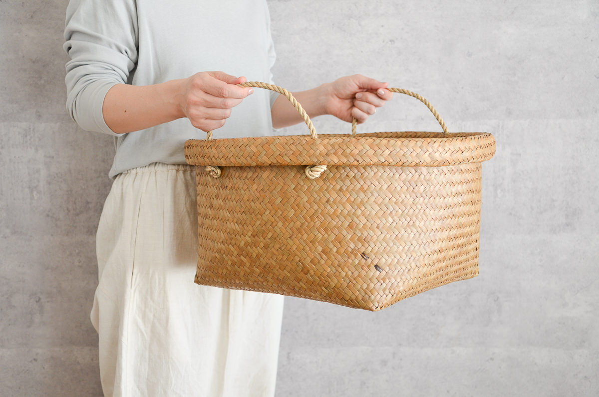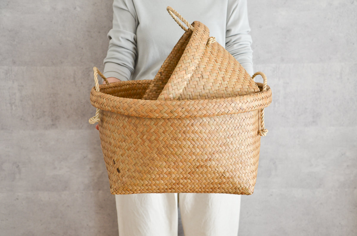 若い世代の編み手が少ないながらも、今、改めてタイ国内でも、こうした自然素材製品の良さが見直され、若い人たちがかごを手に取るようになってきているとのこと。