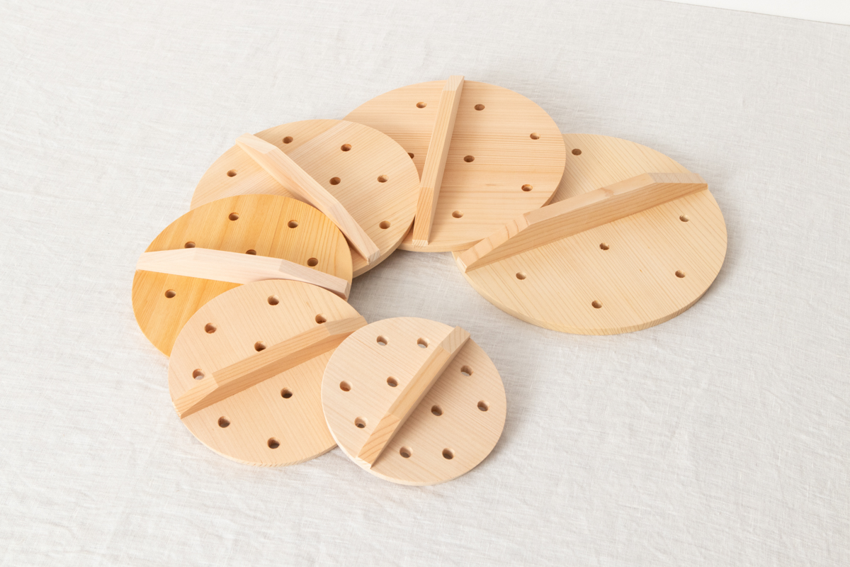 こちらは煮物を作るときに活躍する、木曽さわら製の「穴あき落し蓋」です。