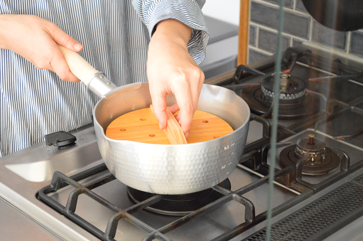 そのさわらで作られた落し蓋は、食材の熱を保ち、