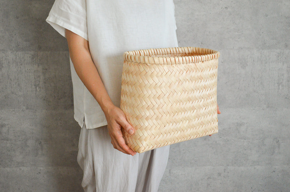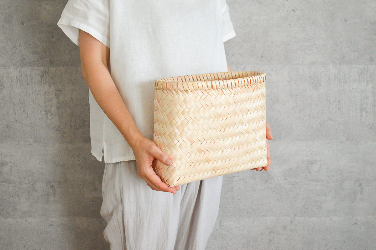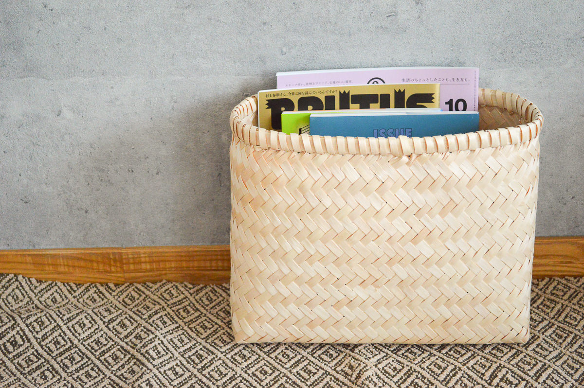 こちらはそのイタヤカエデで作られた整理かごのスリムタイプです。