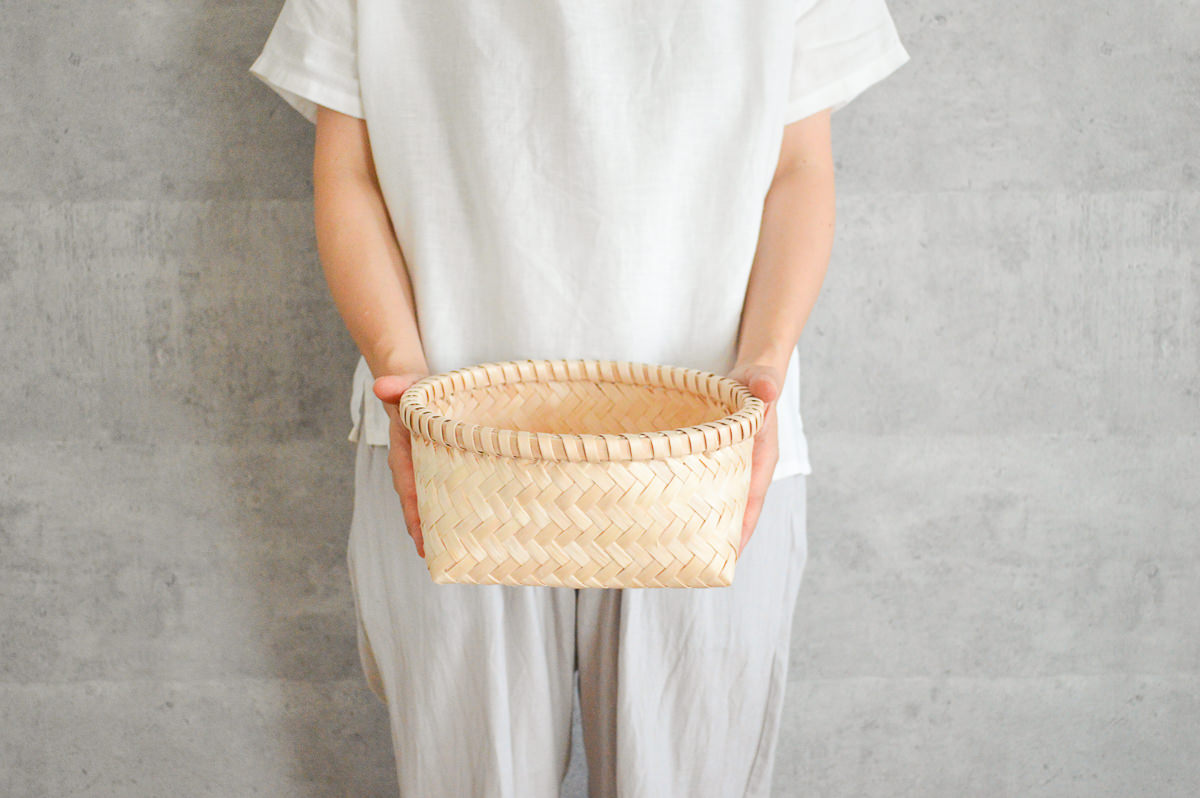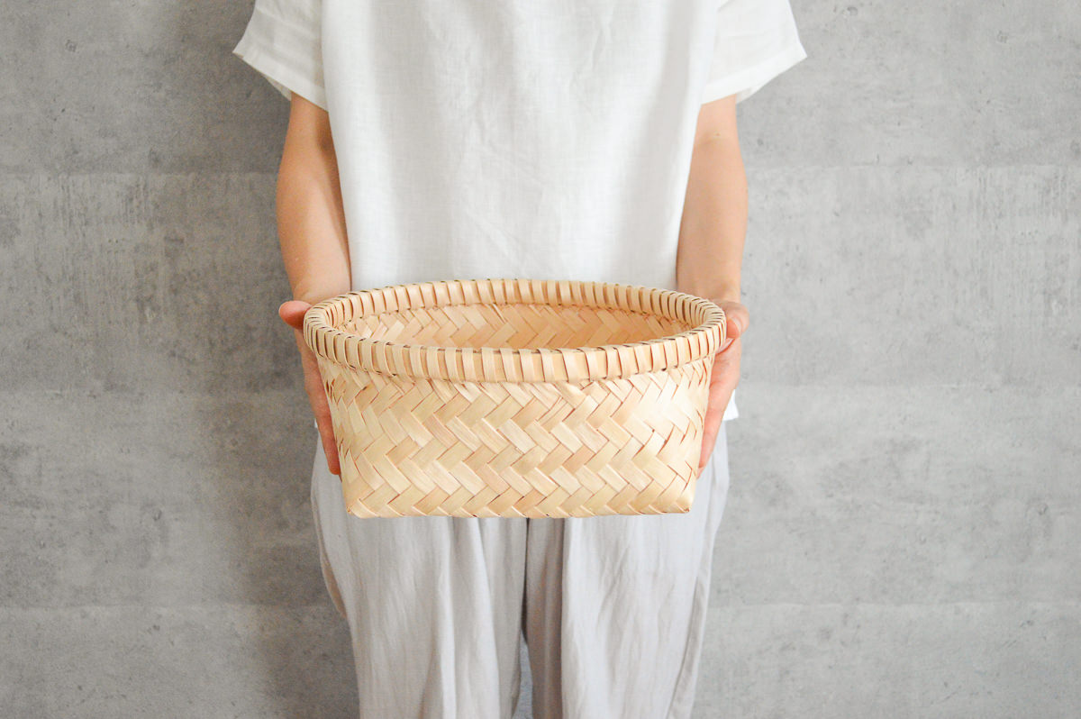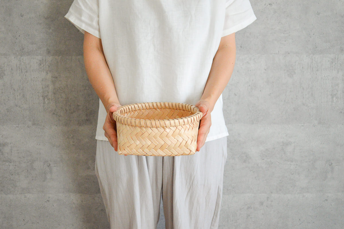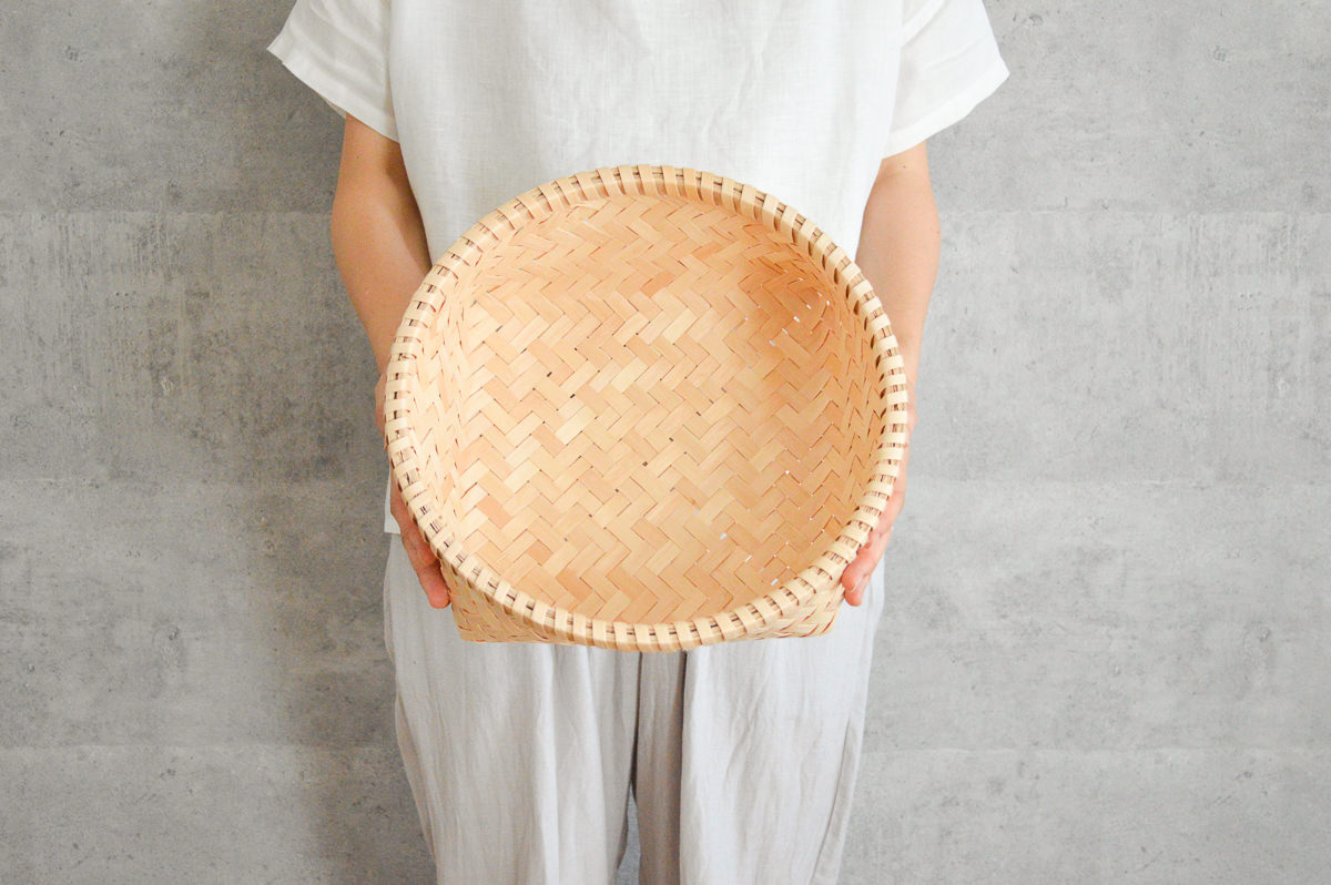 こちらはそのイタヤカエデで作られた丸かごです。