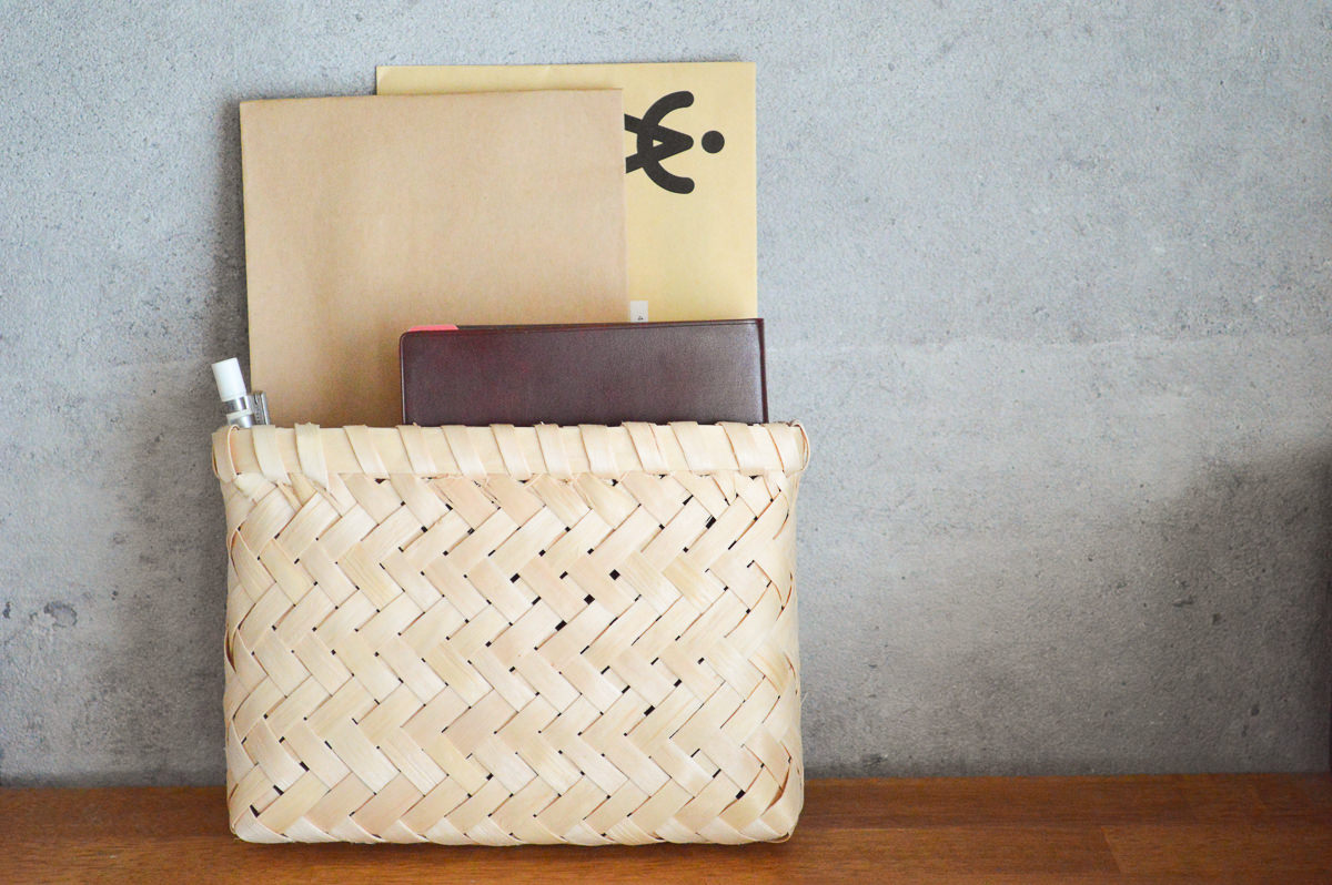 四つ目編みは中に入れたものがわずかに見え、あじろ編みは目が詰まっているので、ほぼ見えない仕様です。