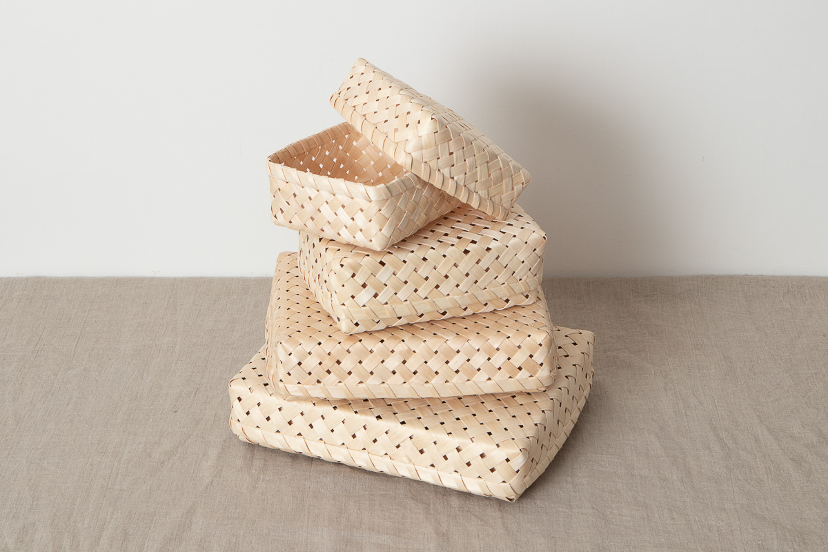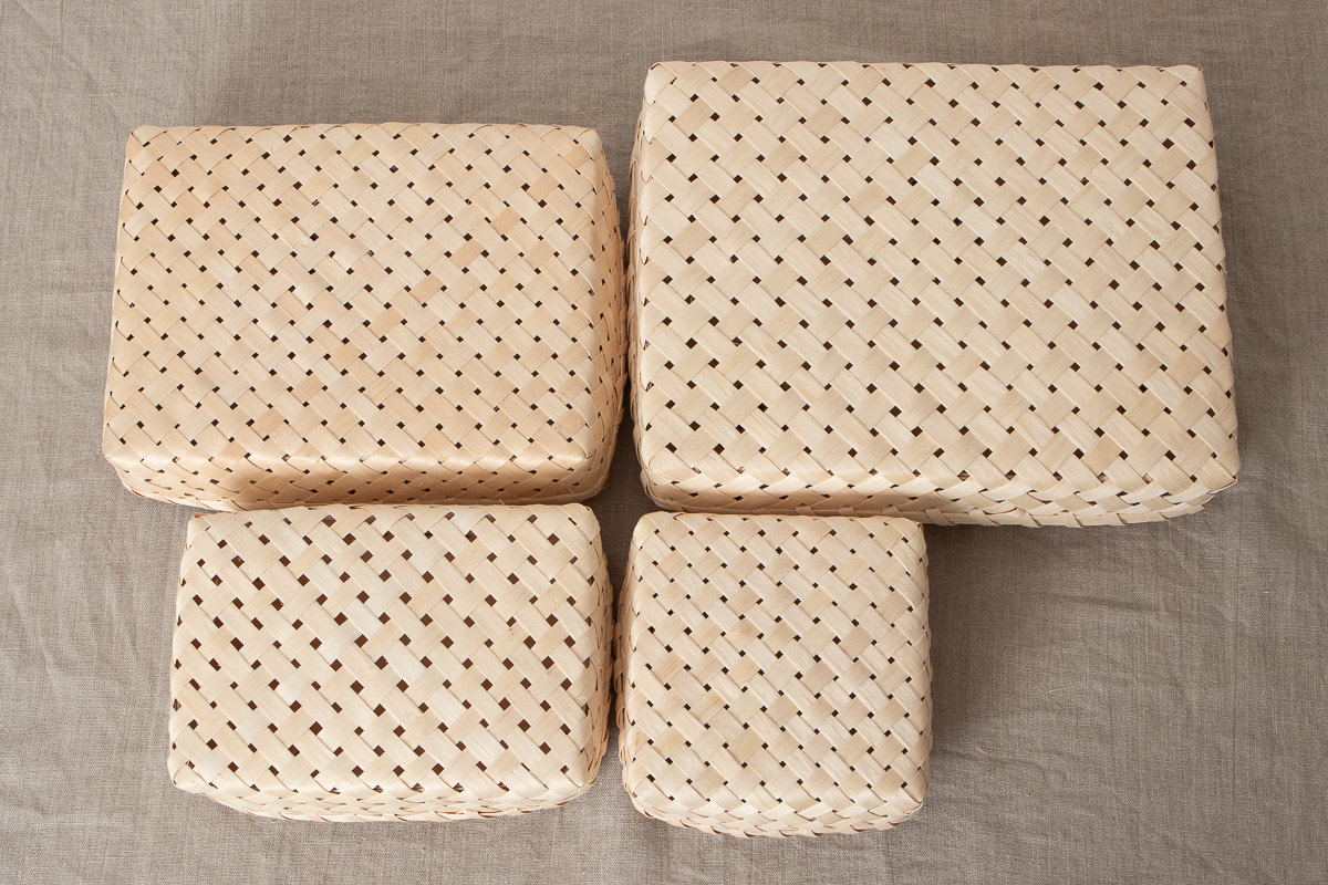 こちらのページではそのイタヤカエデを使って作られた蓋付きかご、4サイズをご紹介します。