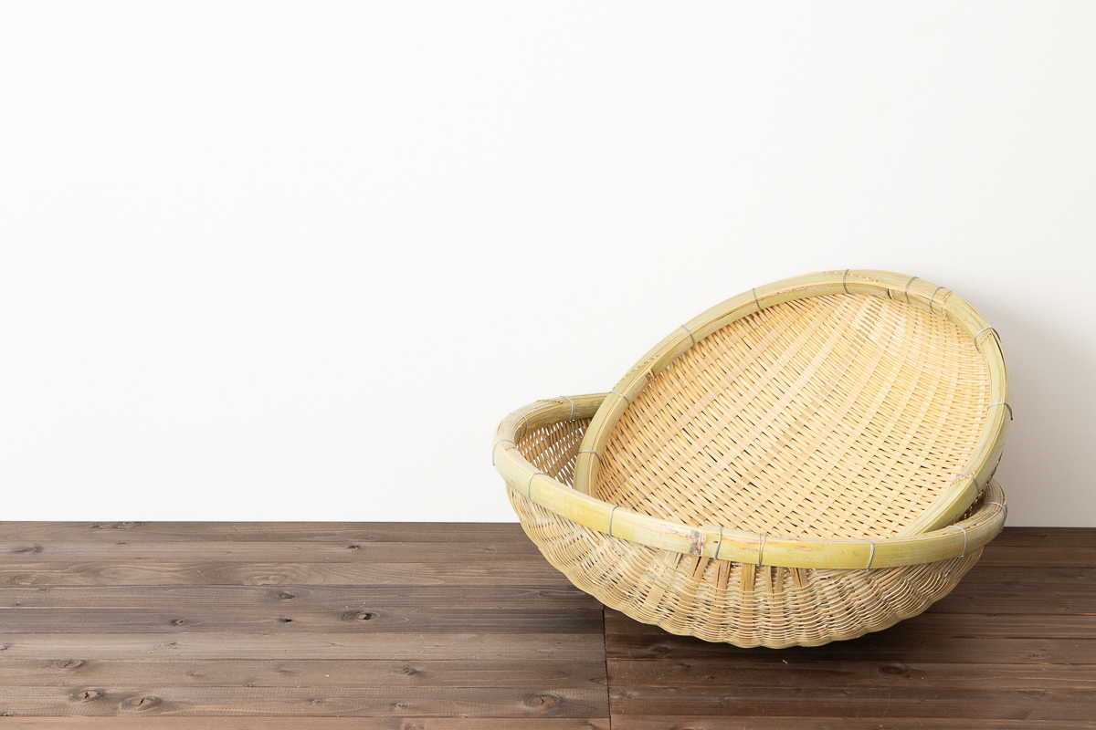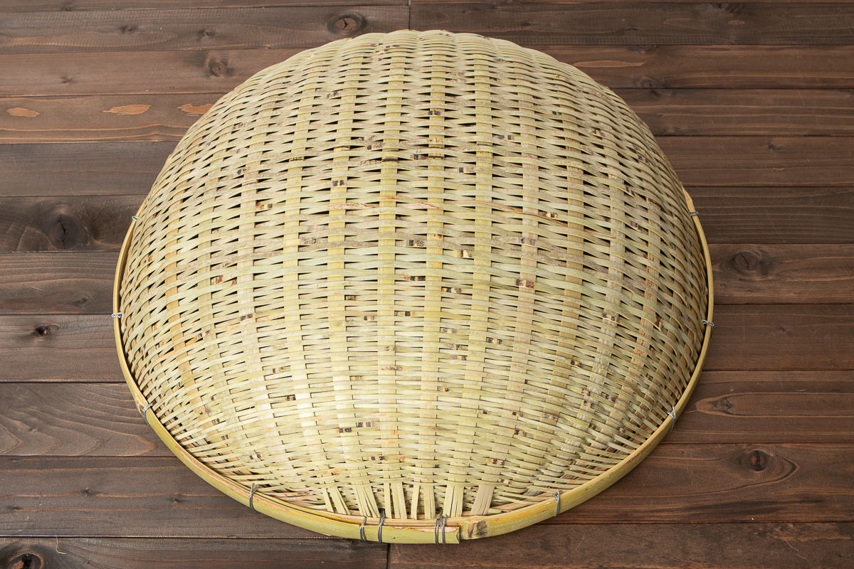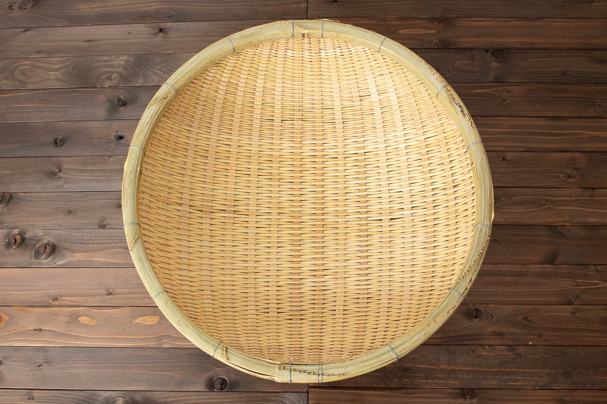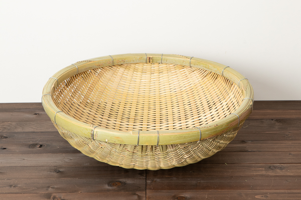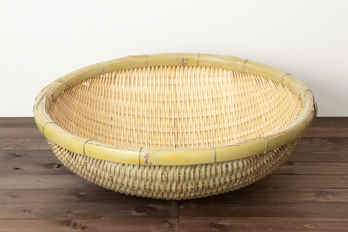 出来立てのざるが届くと、青々しい竹の香りと、とても力強いざるの姿に感服します。