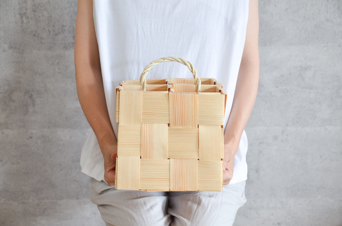 縦も横もおおよそ同じ幅のひごで織り重ねられています。木目と違う方向に擦り傷の様なものがある場合がございますが、不良品ではありません。