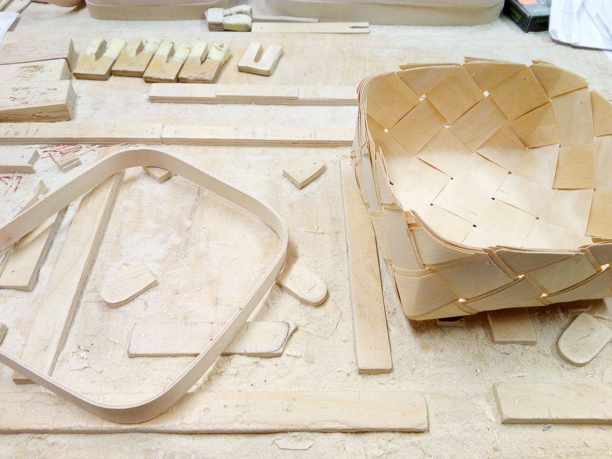 バーチ材(白樺)を使った質の高いかごが日々製作されています。