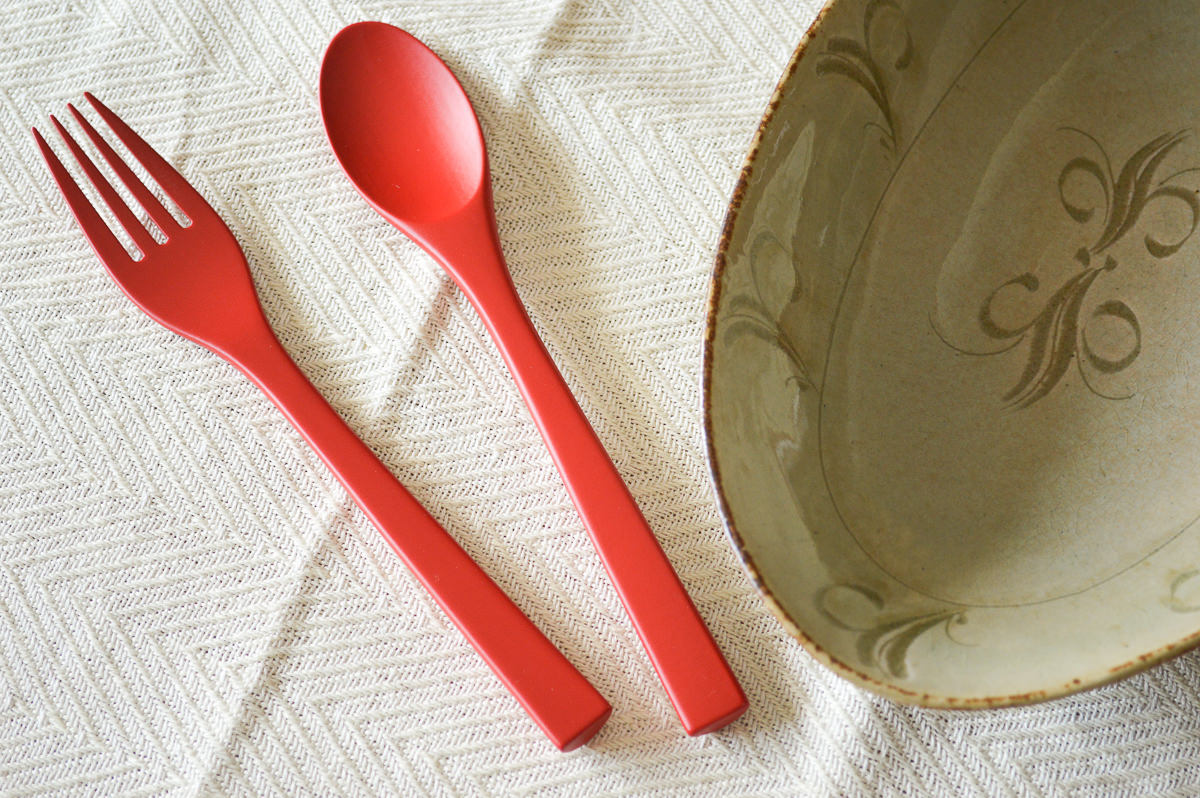 赤にはそのはっきりとした色で通常の竹カトラリーにはない風合いがあります。