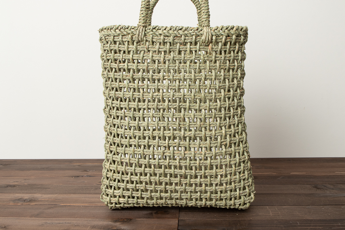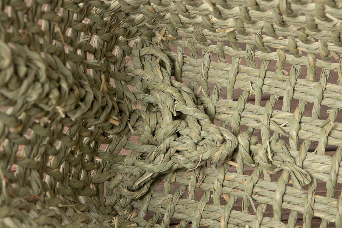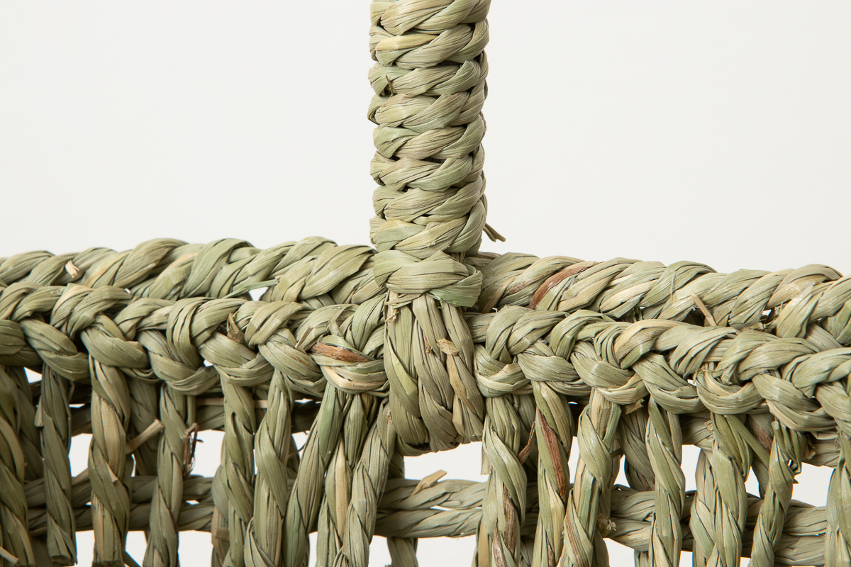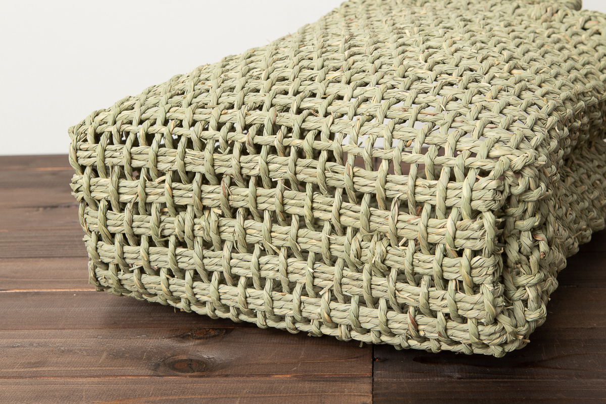 編み目は、織機を使っているため、草をよったものを編んでいるとは思えないほど、端正な仕上がりになります。