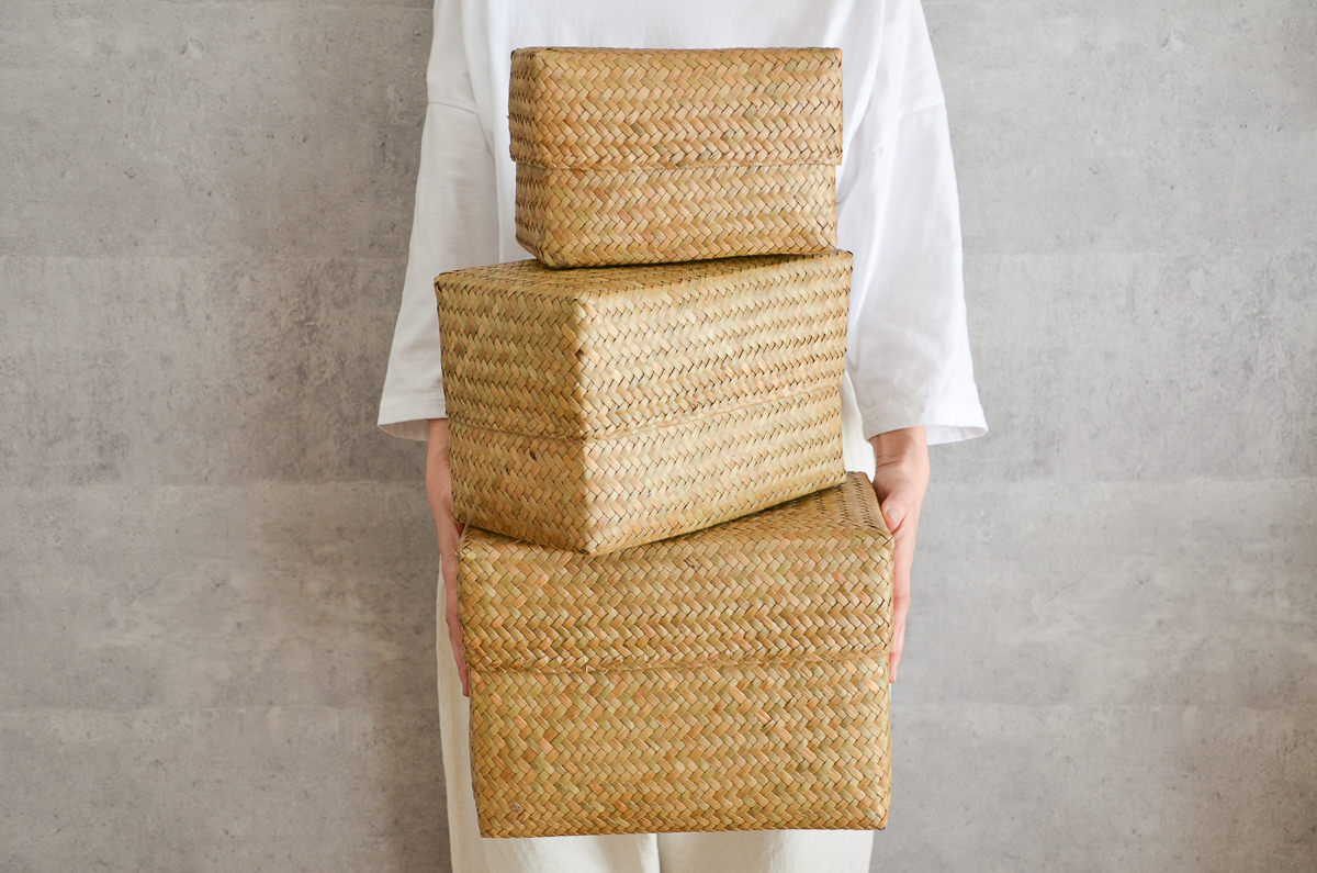 蓋付き、長方形のコンパクトな整理かご「S、M、L」3サイズをご紹介します。