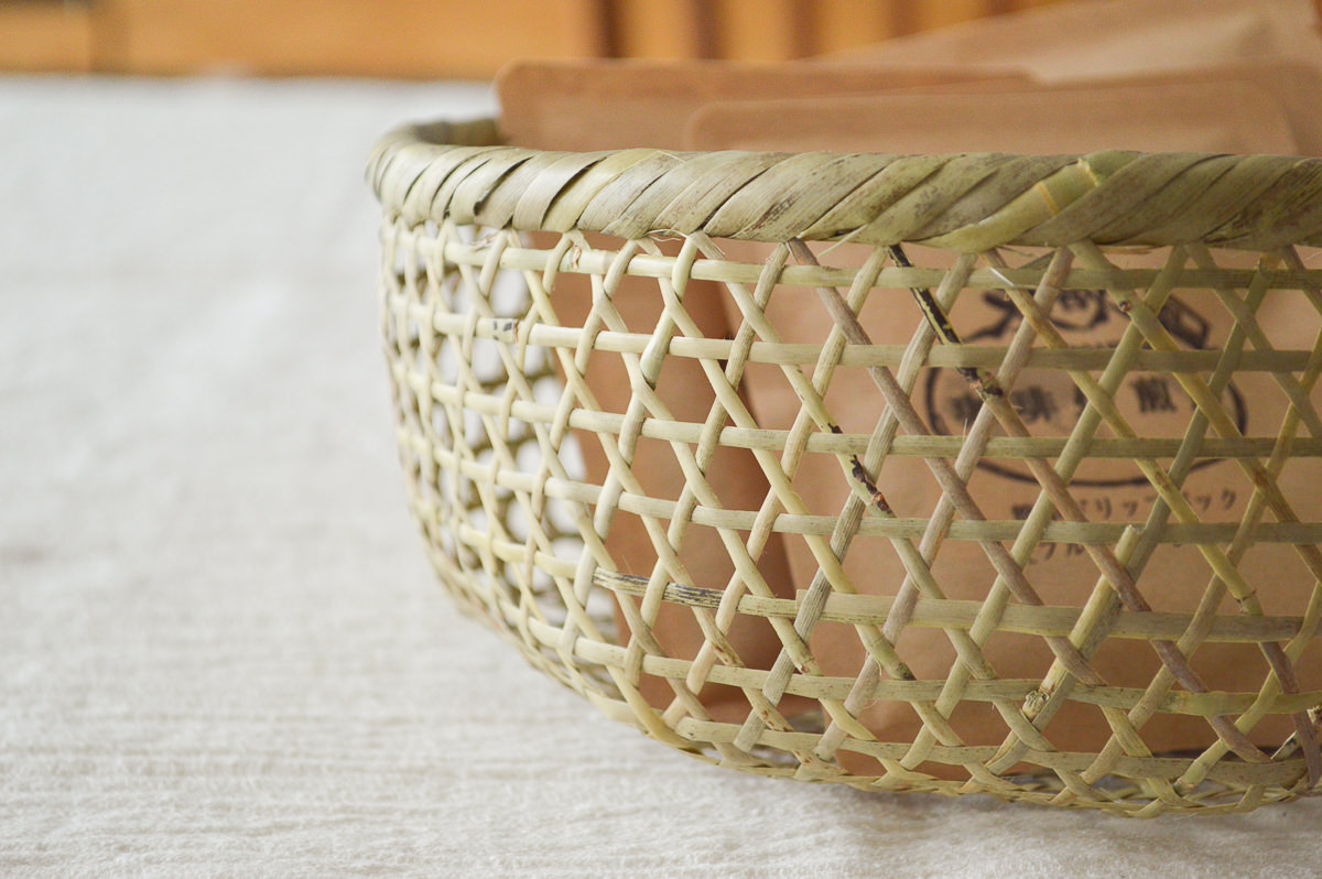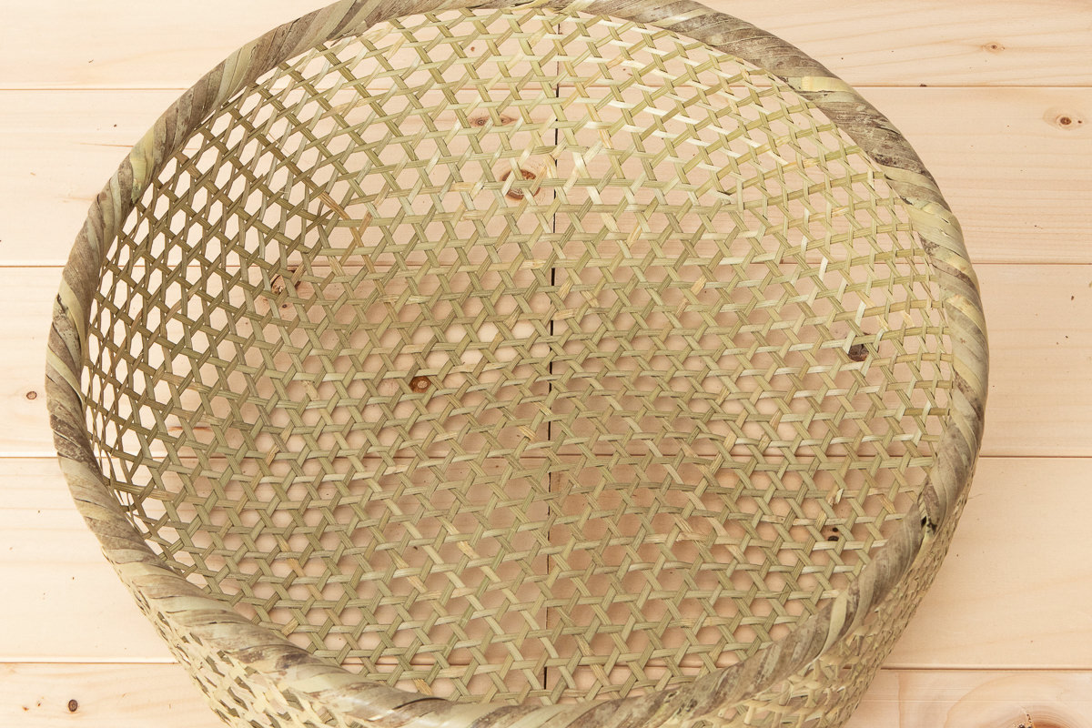 縁も篠竹を芯材にして、篠竹で巻かれています。宮城の篠竹は他の地域の竹細工とはまた違った色味・風合いです。