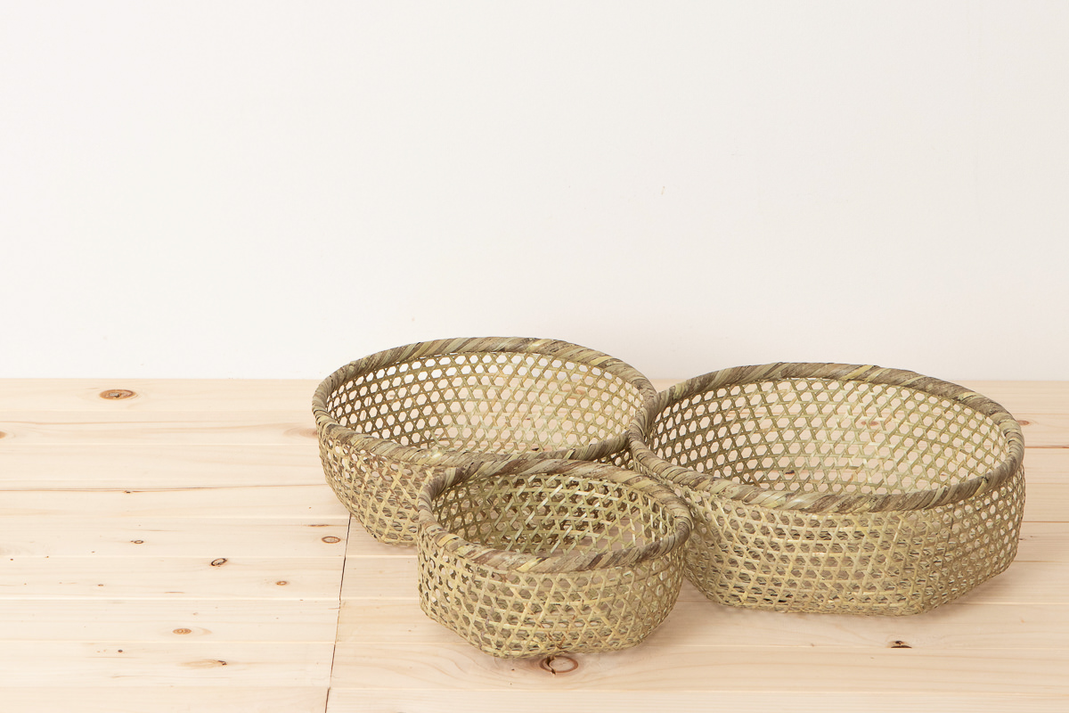 軽くて、しなやかな篠竹の質感や風合いを存分に楽しめるこの目かご。
