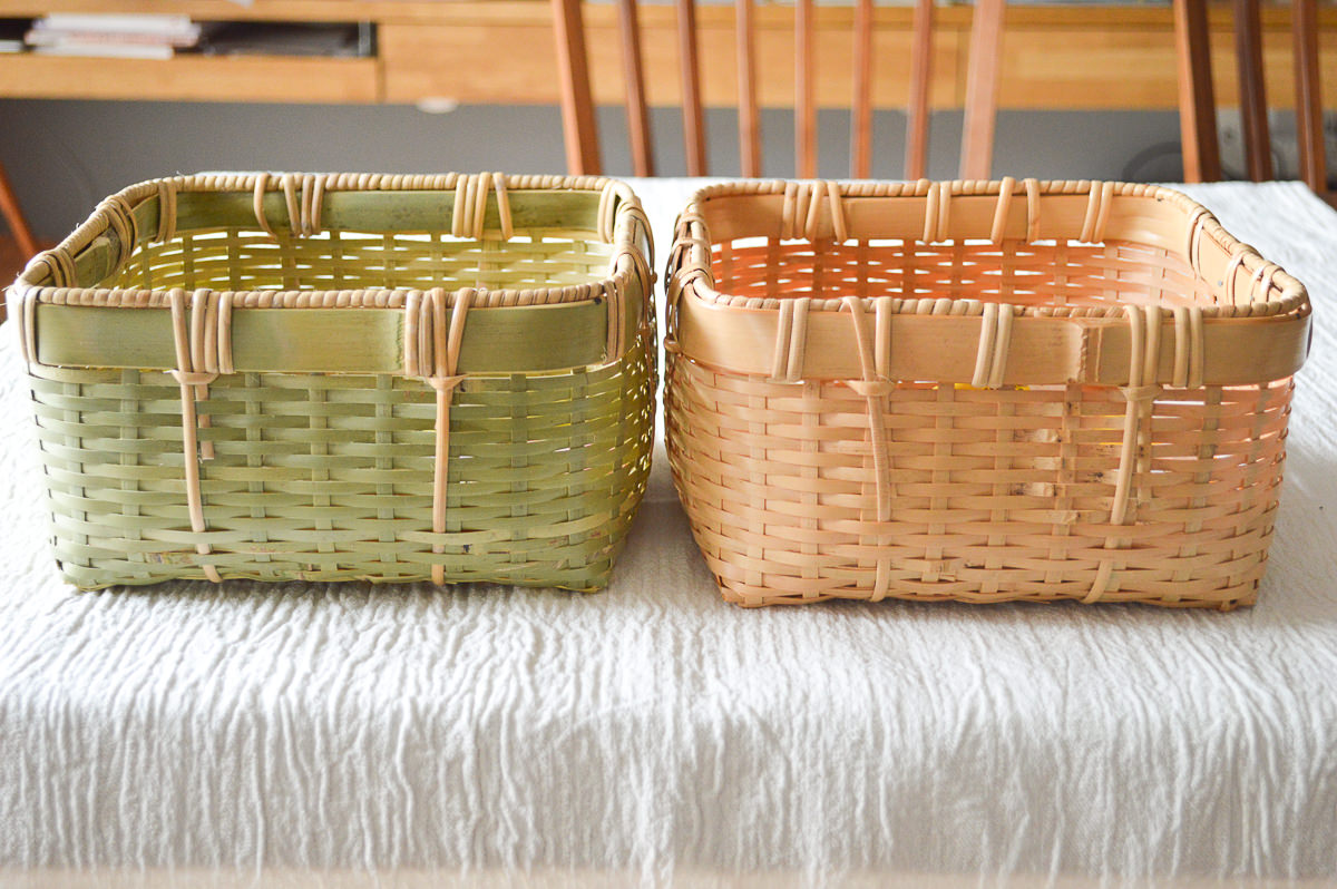 右が青みを残した、比較的作りたてのかごで、