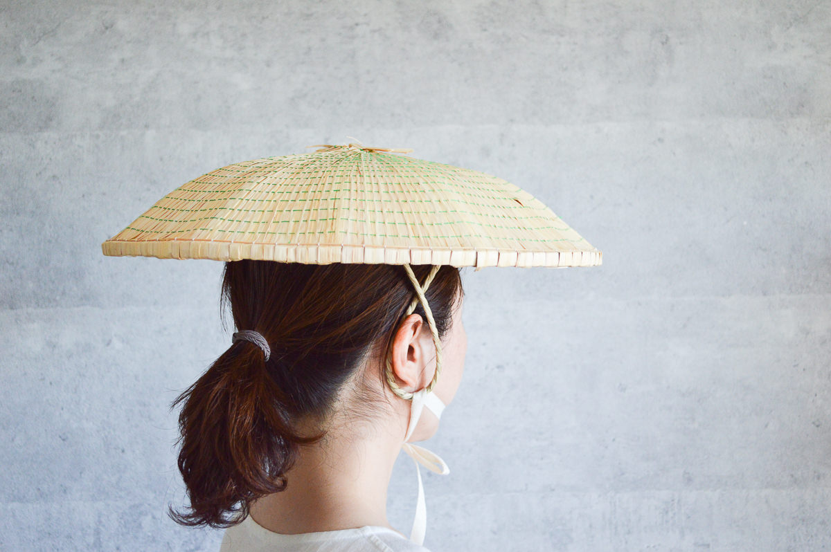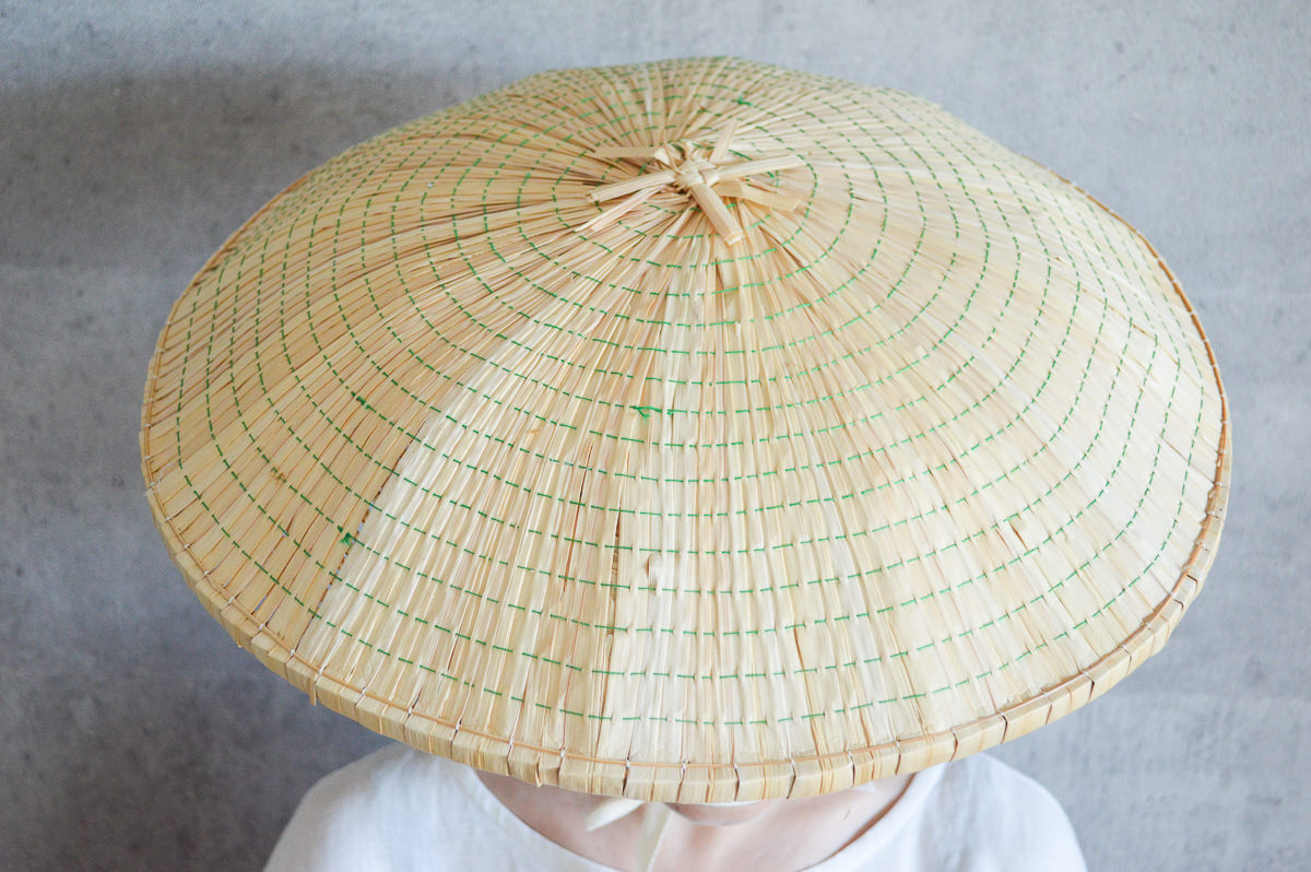 軽くて風通しよく、涼しいと使われている菅笠は、水や雪もはじいてくれます。