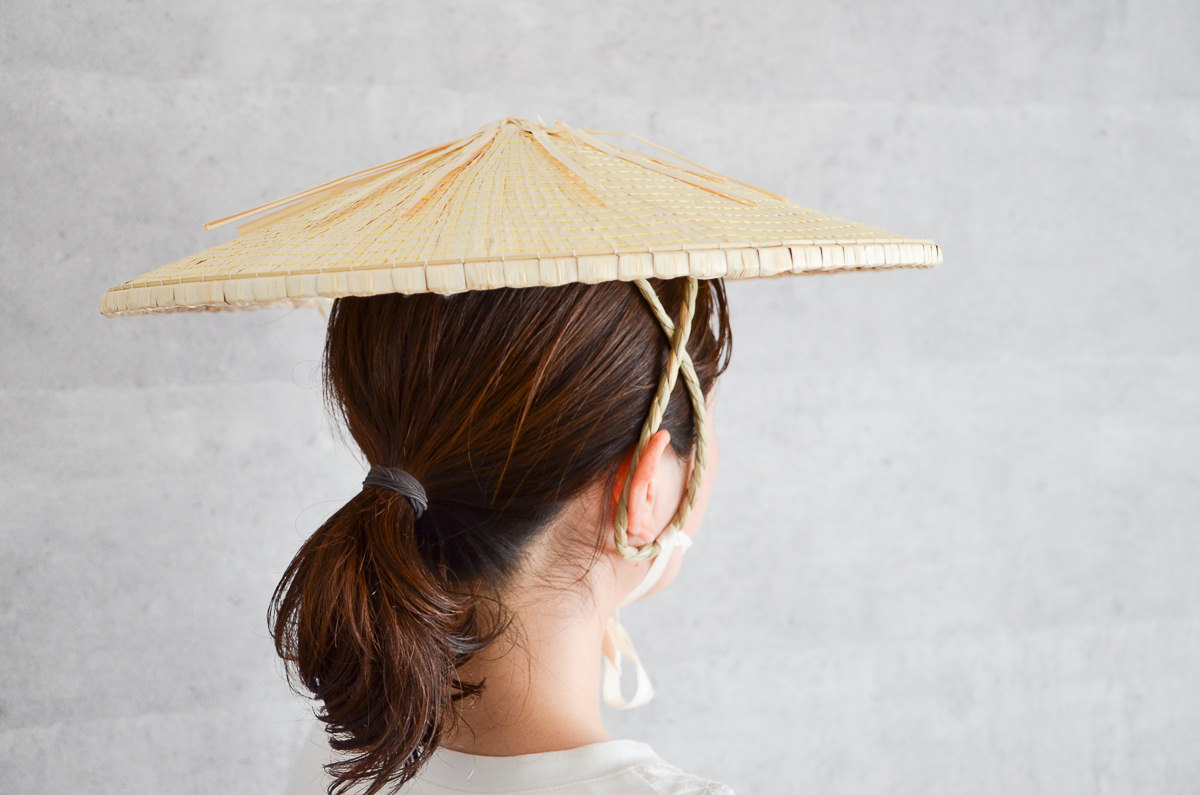 菅笠は、お祭りや舞台衣装、お遍路の衣装でもよく用いられる道具ですが、