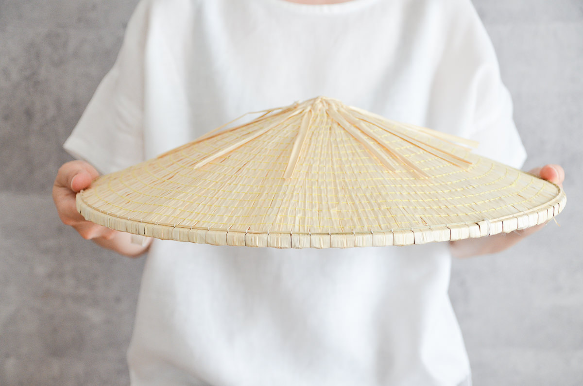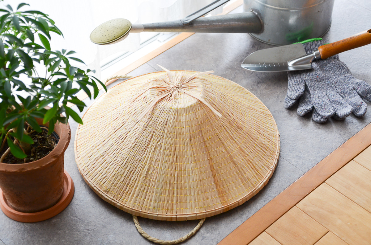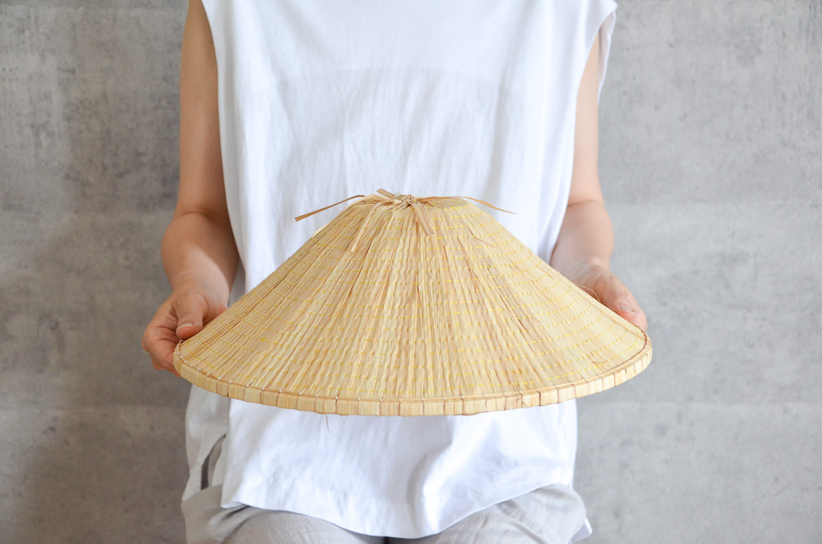 軽くて風通しよく、涼しいと使われている菅笠は、水や雪もはじいてくれます。