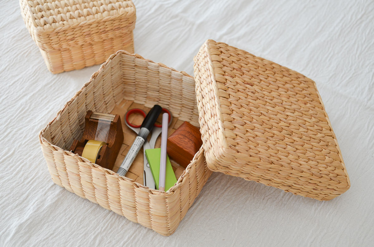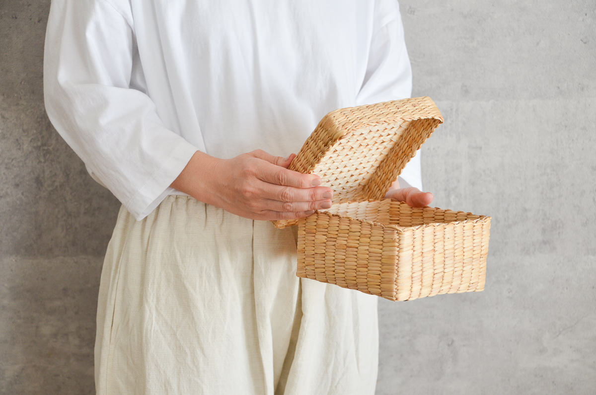 小さめ、箱型の蓋付きかご、S・M・Lの3サイズをご紹介します。