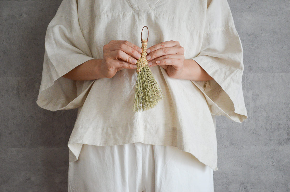 ホウキモロコシの穂のしなやかさが直に手に感じられるような作りです。