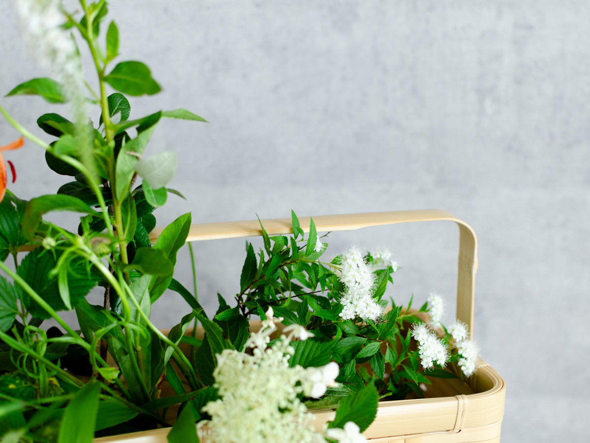 白竹のかごは、落ち着いた色味で明るさや爽やかさがあるので、