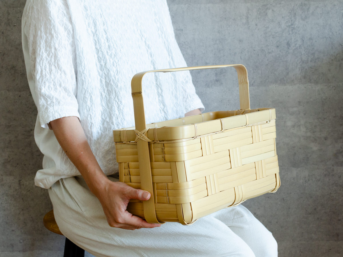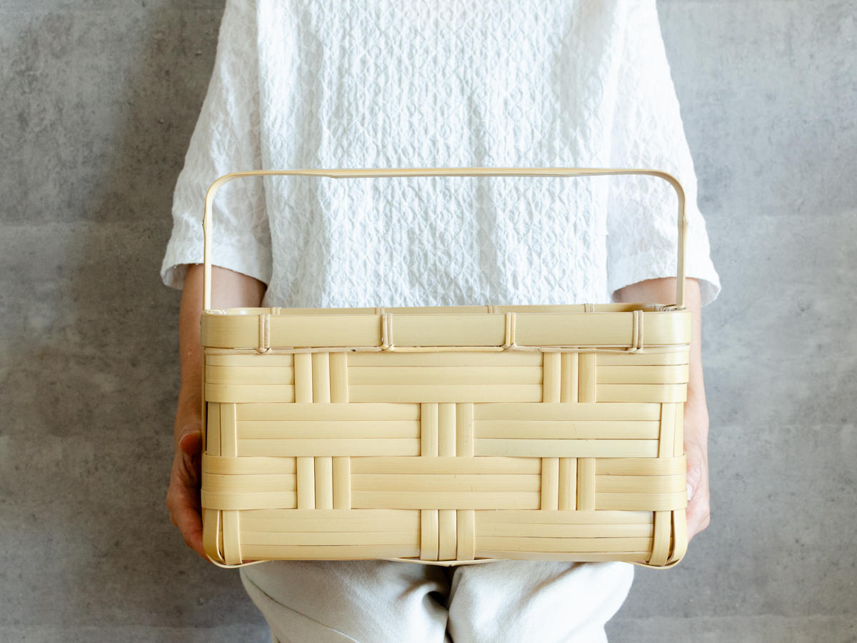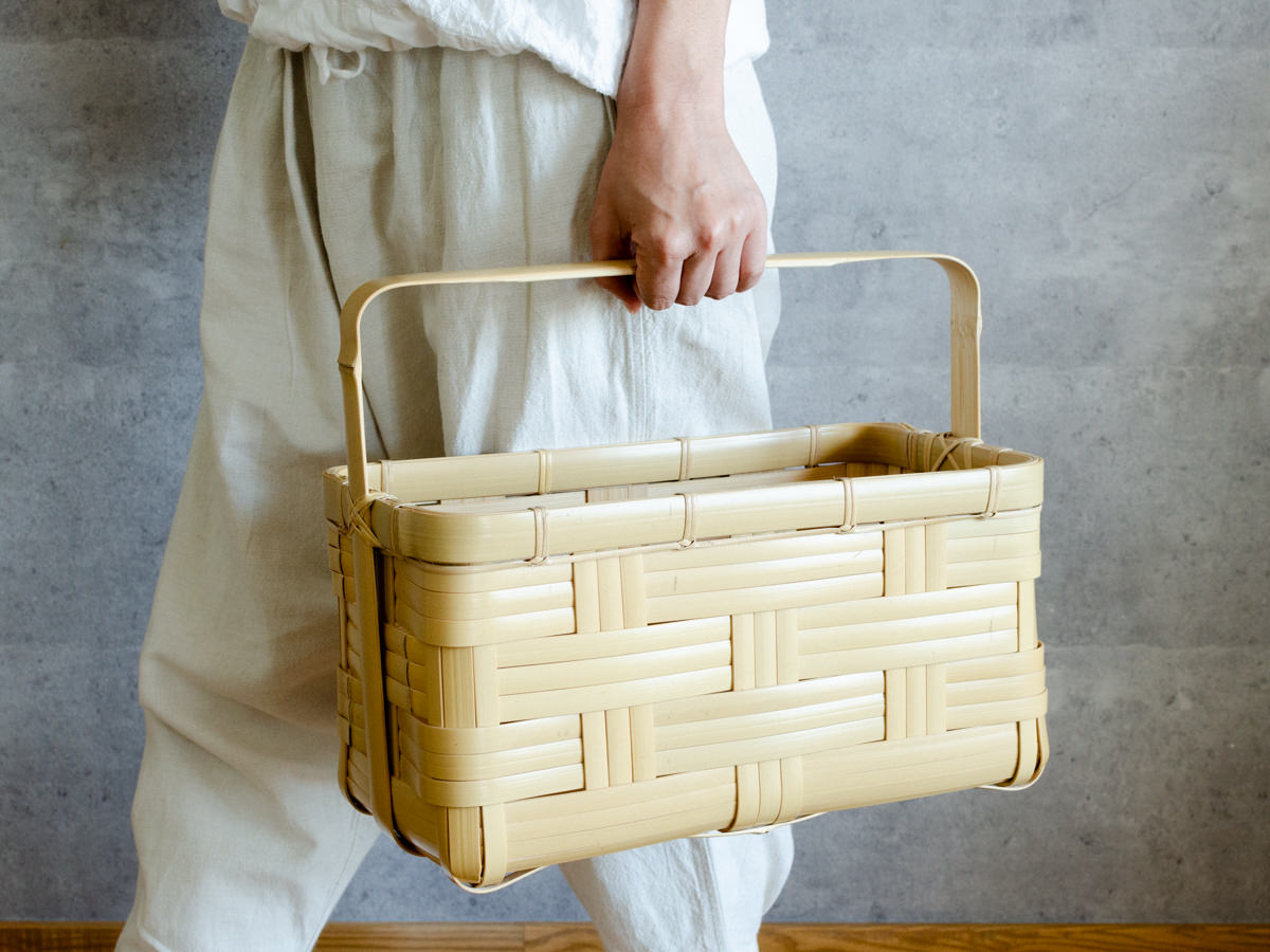 こちらは白竹-しろたけ-でつくられた、持ち手つきのかごです。