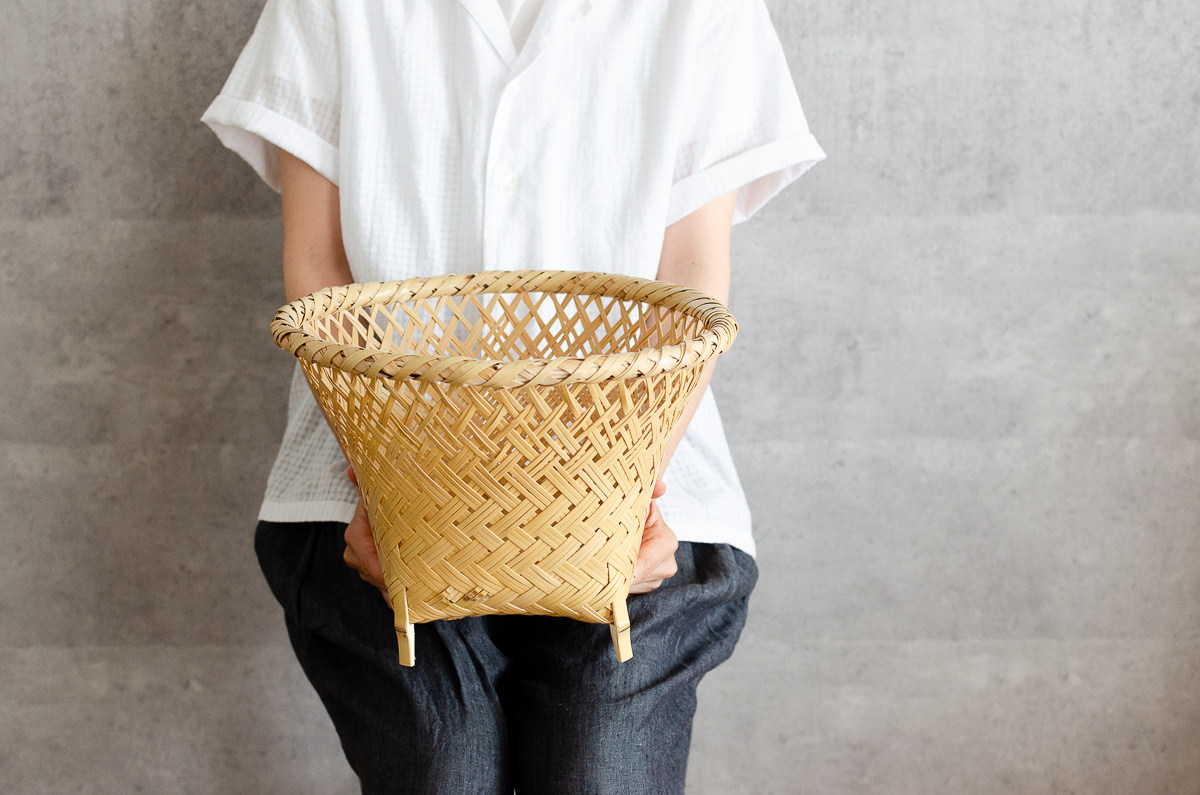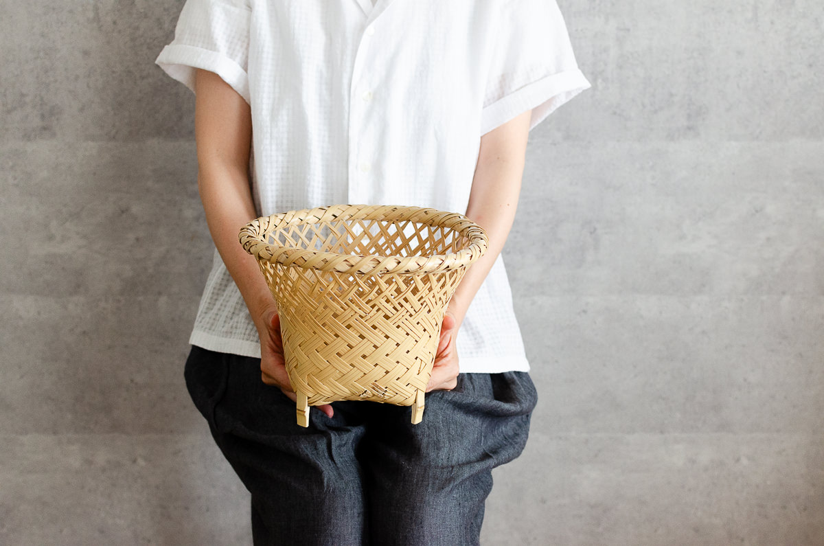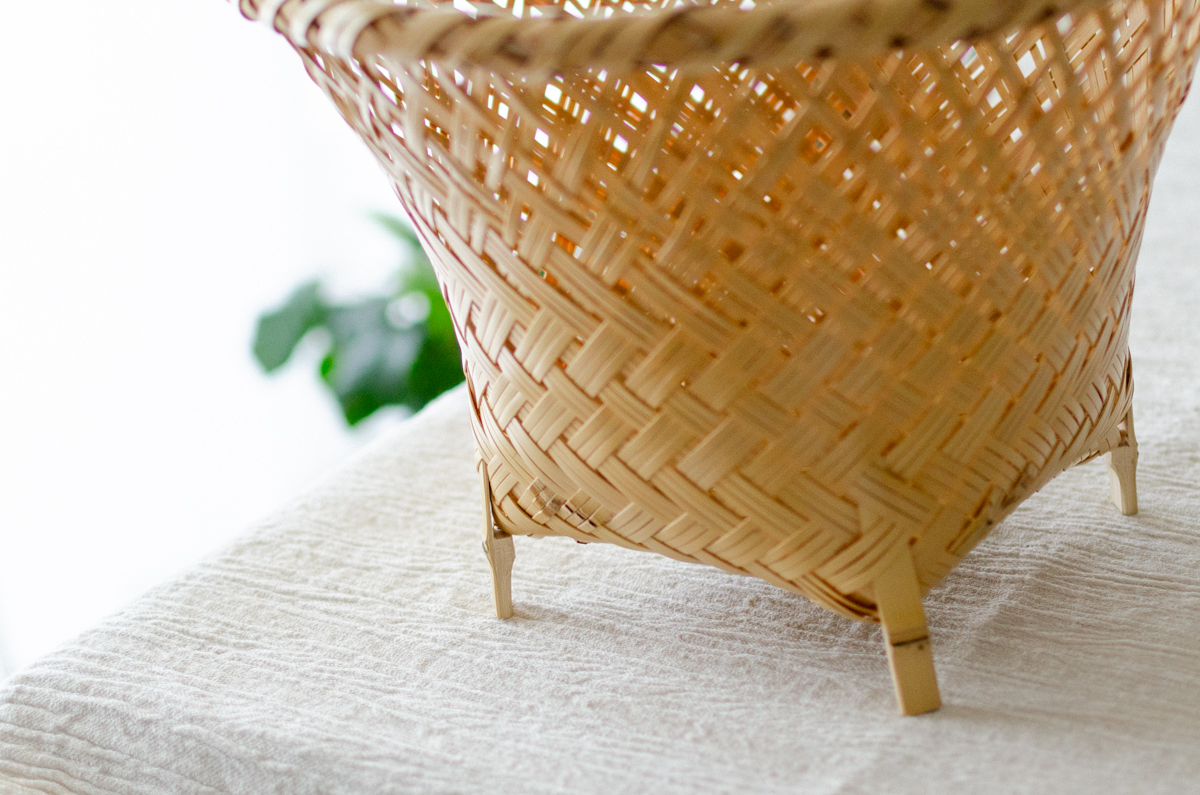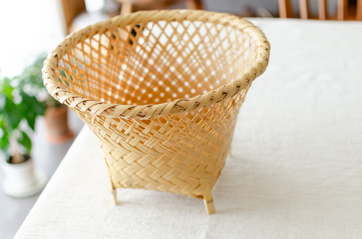 こちらは白竹-しろたけ-でつくられた、足の付いたかごです。