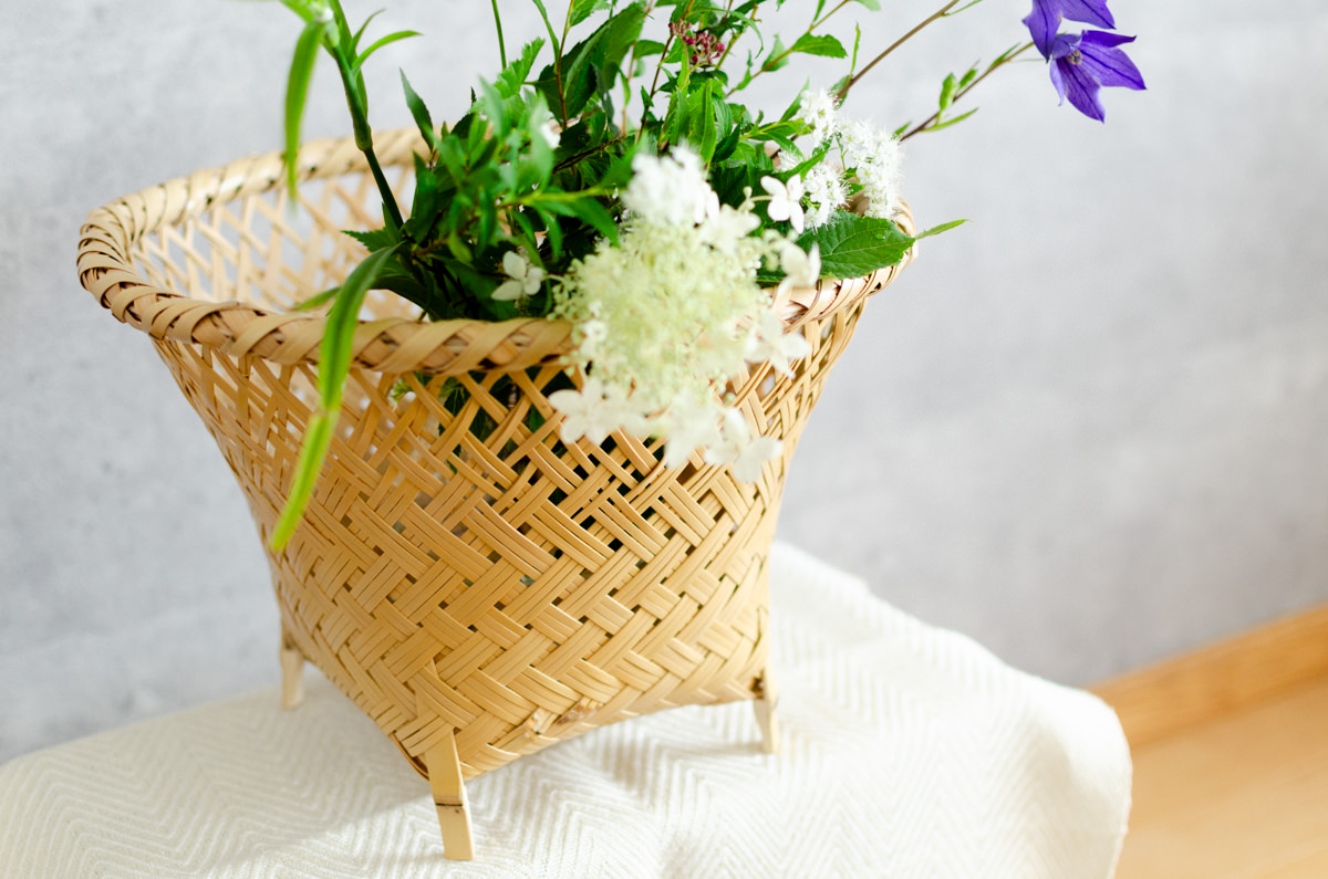 白竹のかごは、落ち着いた色味で明るさや爽やかさがあるので、