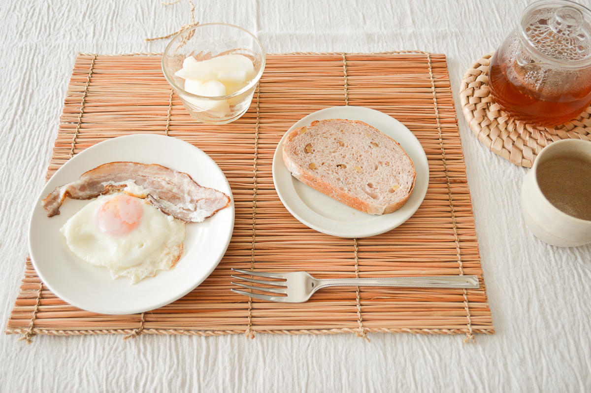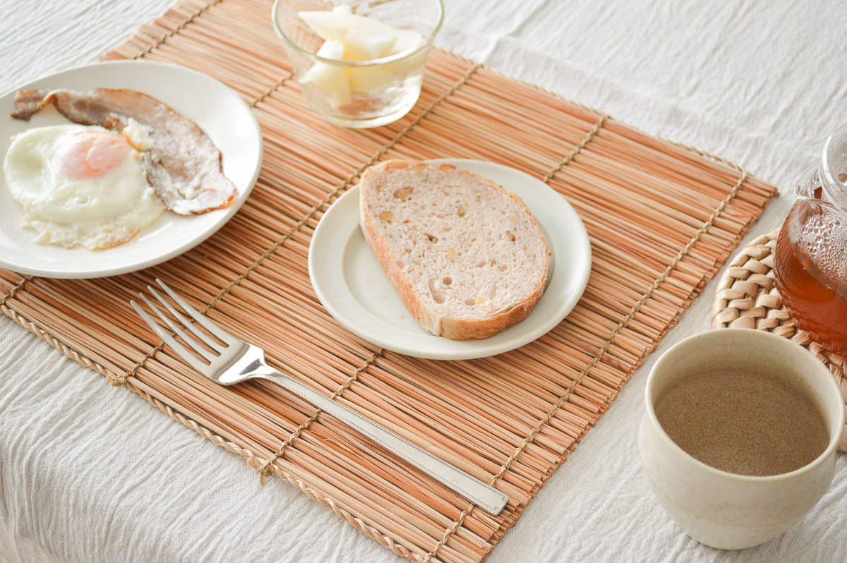 どのパターンでも相性良く、さらっとした質感の月桃が食事を引き立ててくれます。