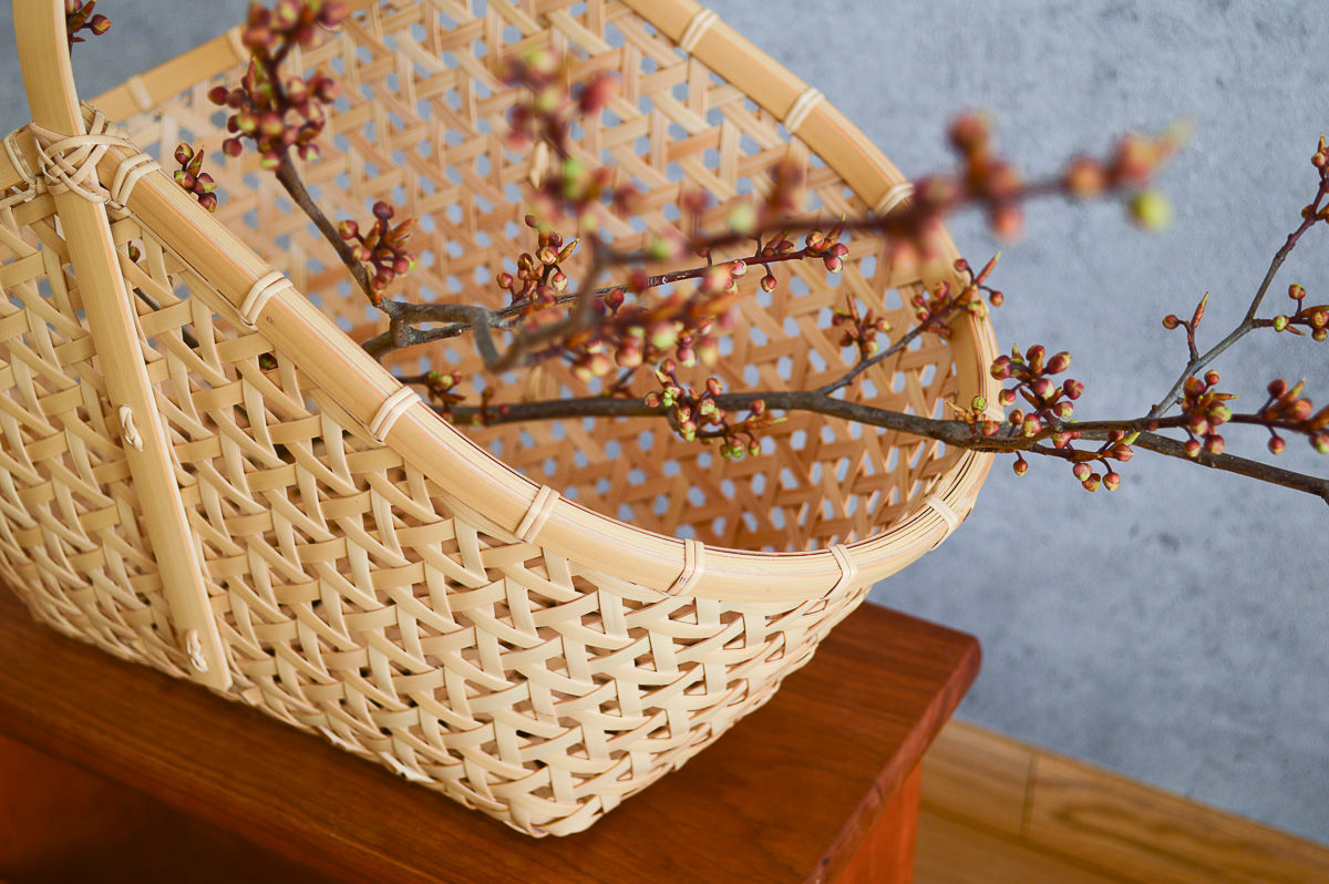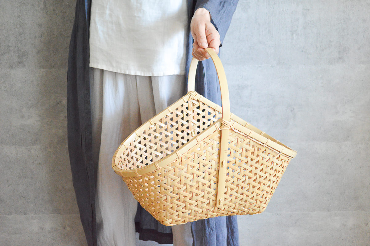 地元の愛媛県、ひいては四国全体の竹細工を盛り上げようと日々、活動されています。そのような志を持った作り手によるかごの数々は、いずれもがっちりとして頼りがいのある仕上がりです。