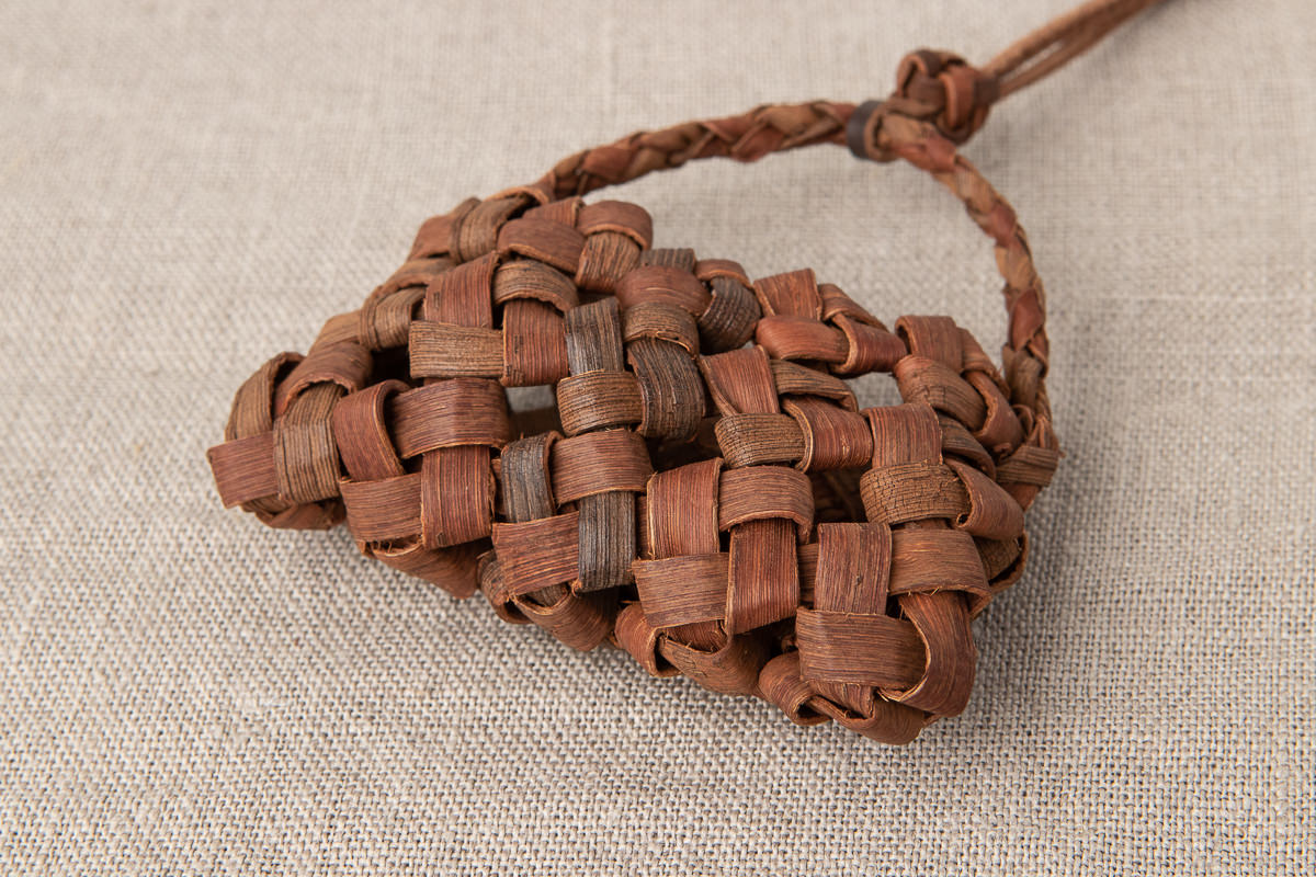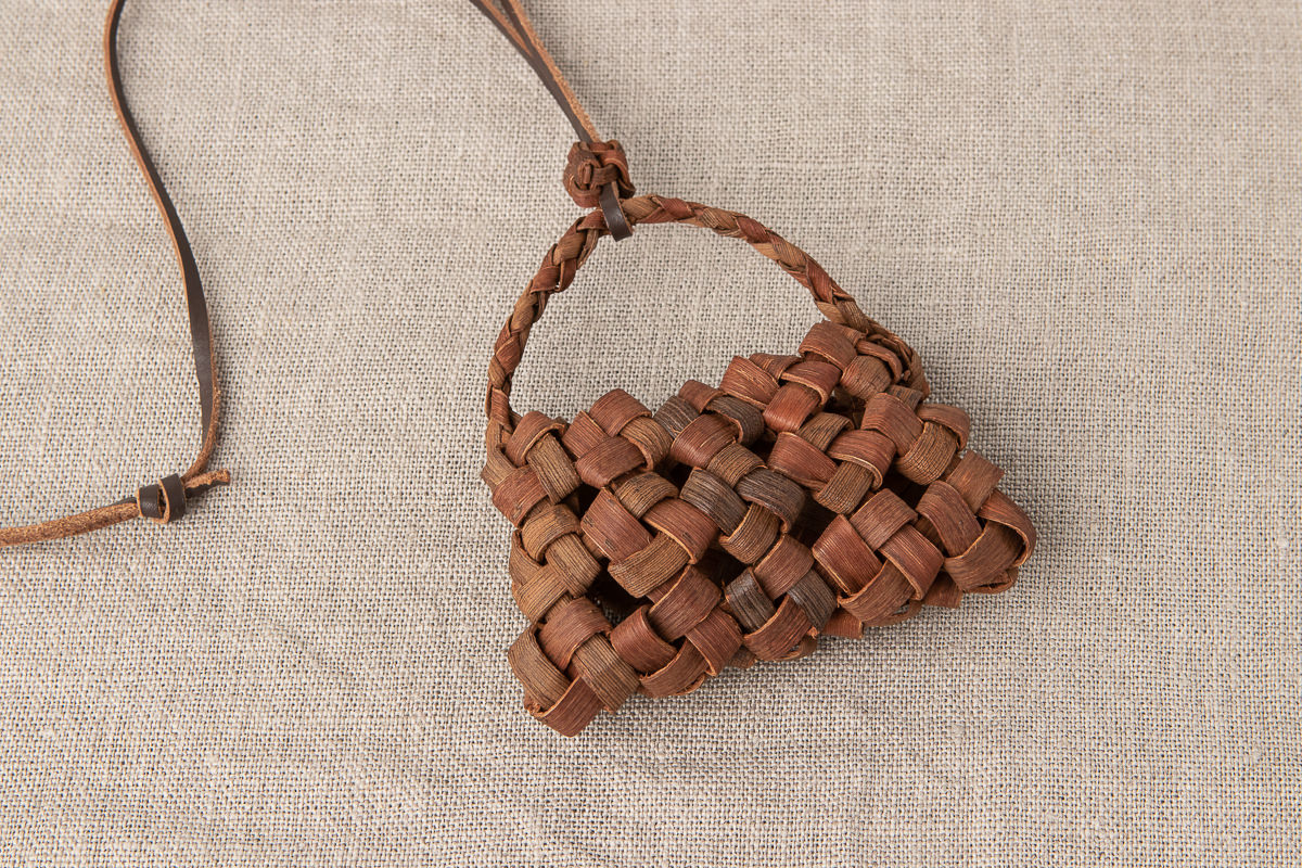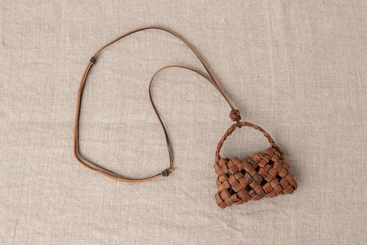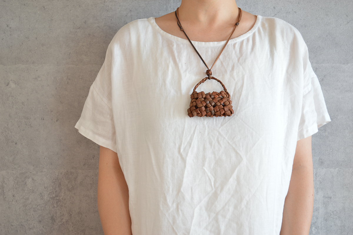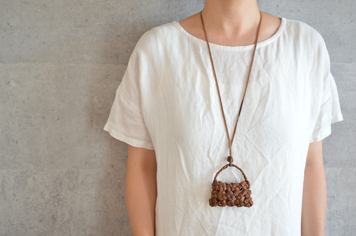 こちらは、やまぶどうの蔓を使って作られた、トップにハンドバッグ型のついたペンダントです。
