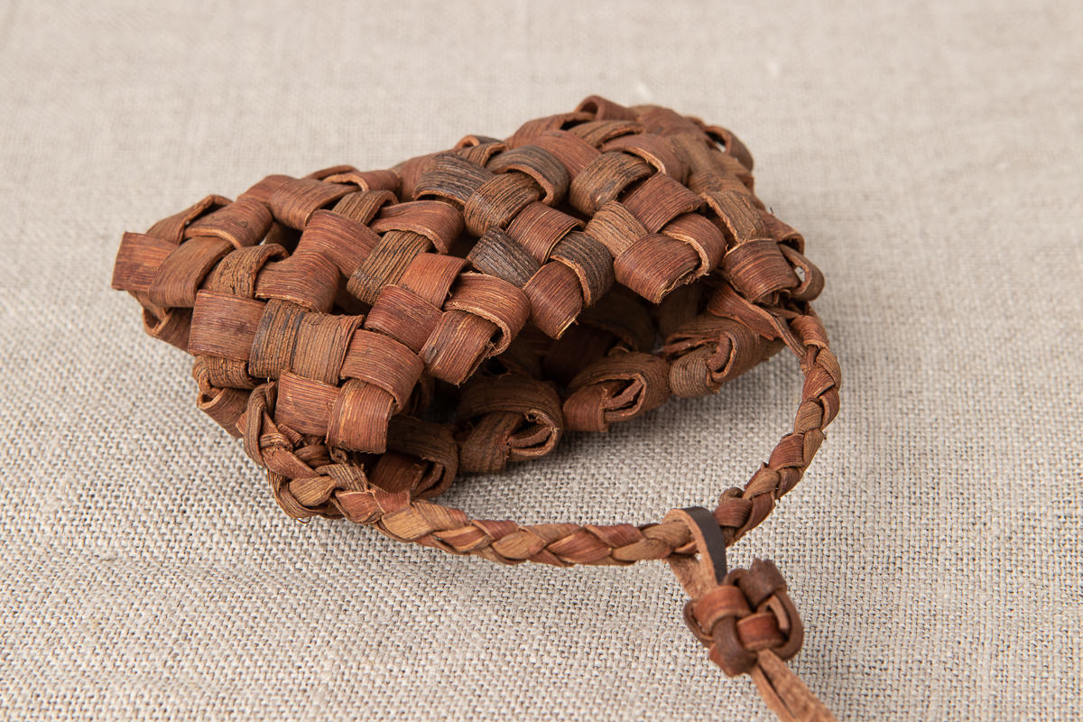 革ひもをまとめるポイントの部分にも細やかな気遣いがあります。こちらもやまぶどう製です。