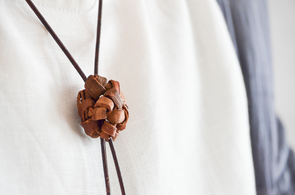 こちらは山ぶどうの蔓を使ったラリエットペンダントです。