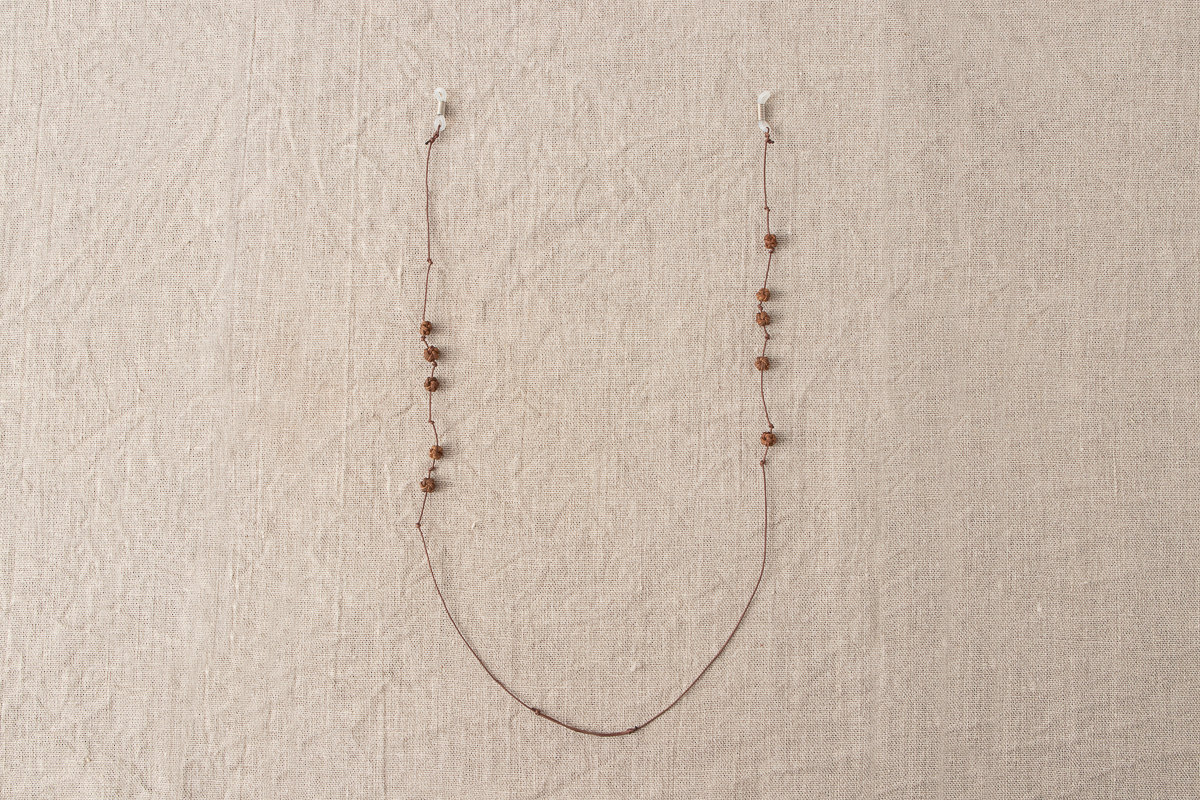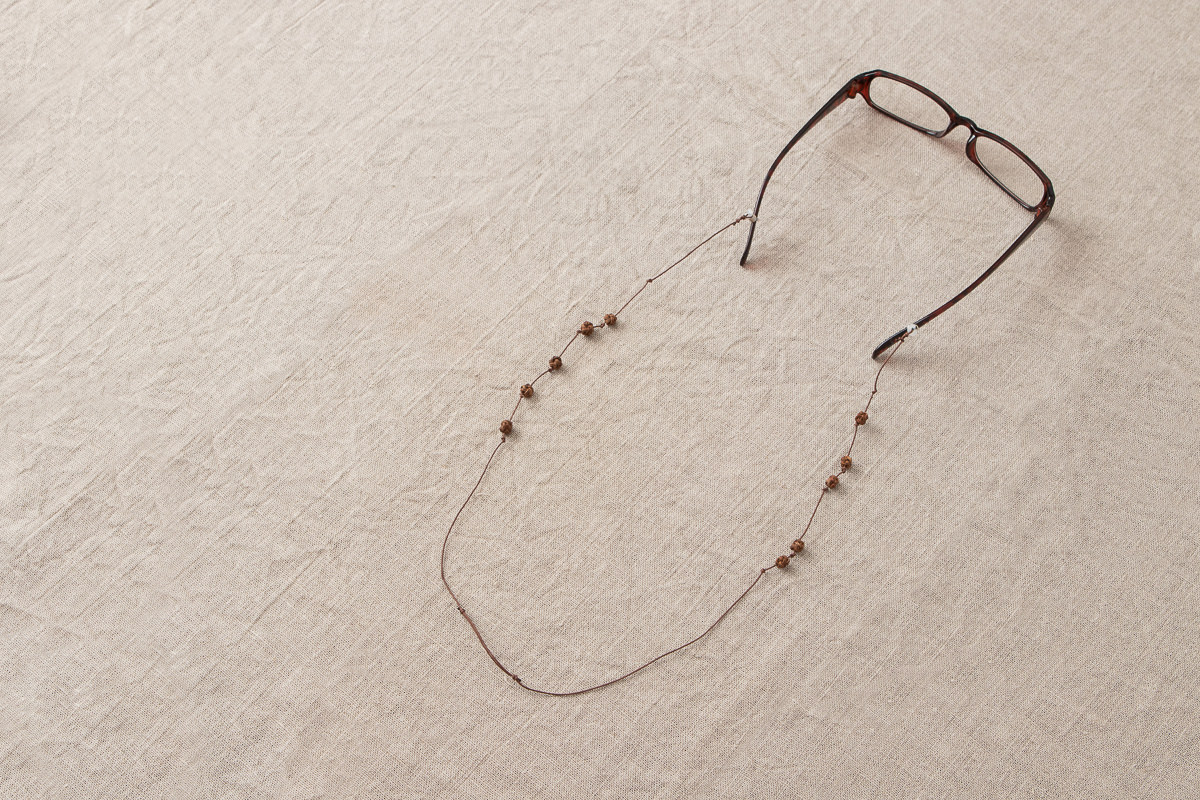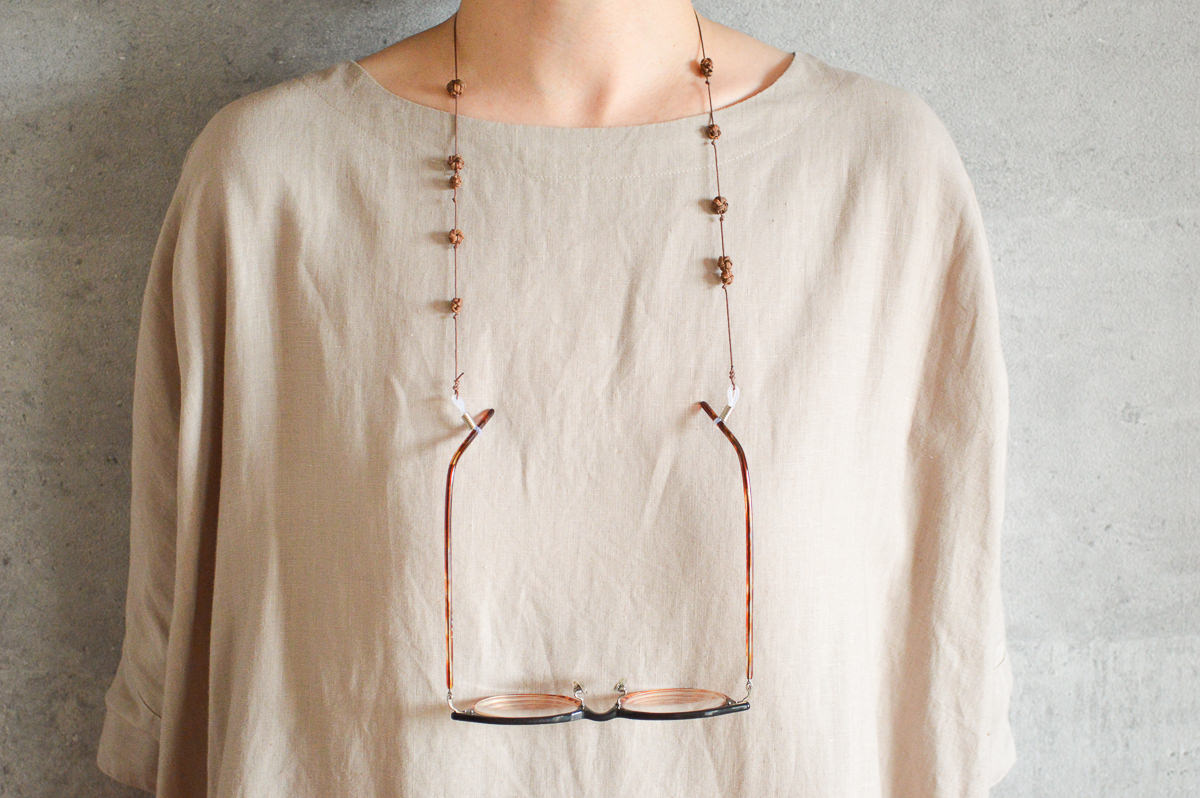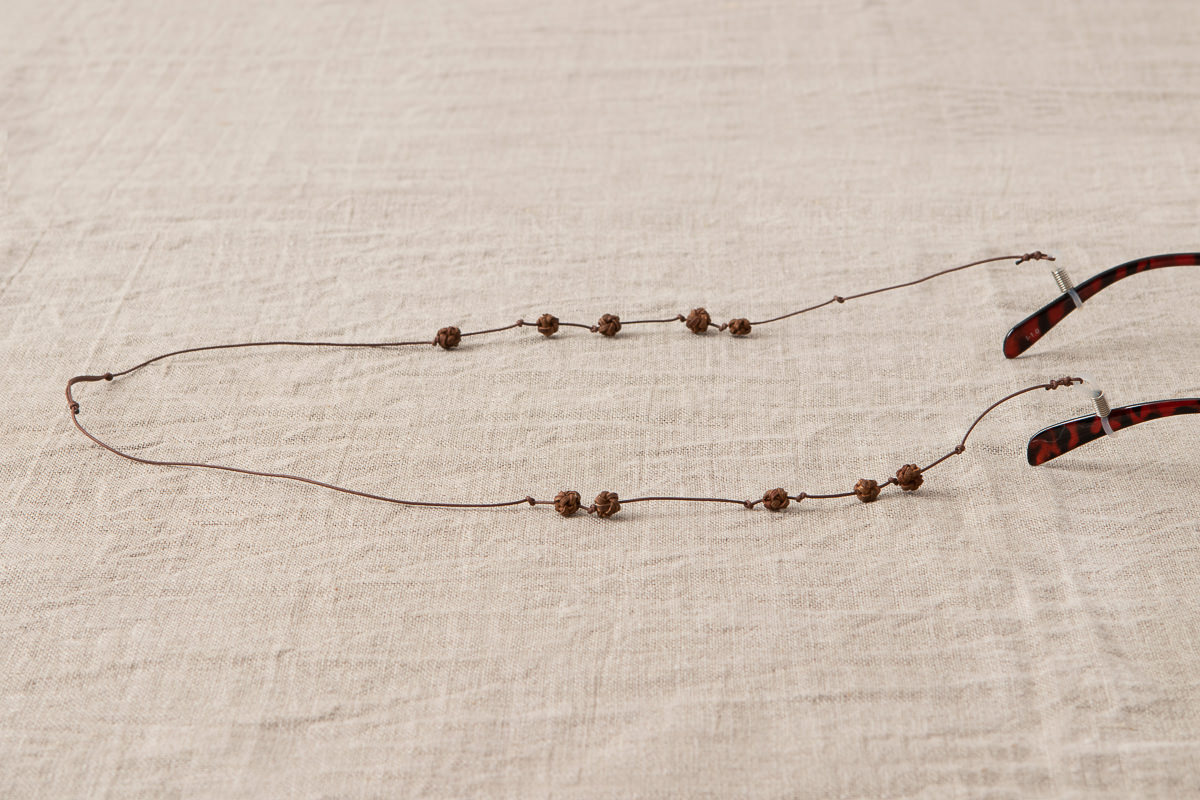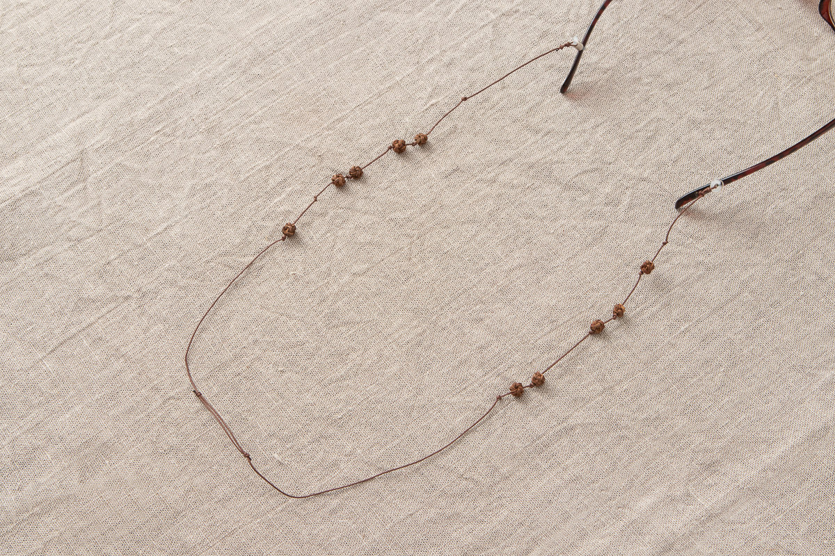 こちらは山ぶどうの飾りを施した、首から下げられる紐状のメガネホルダーです。
