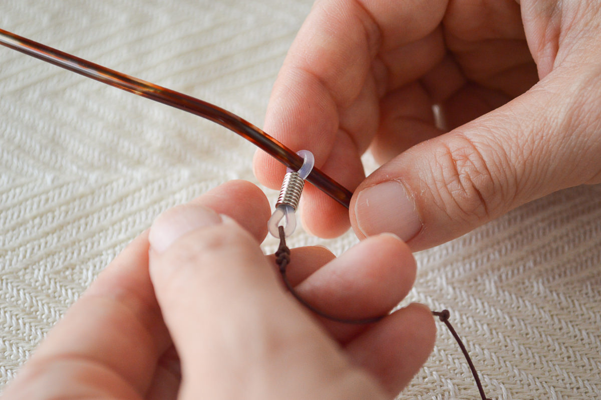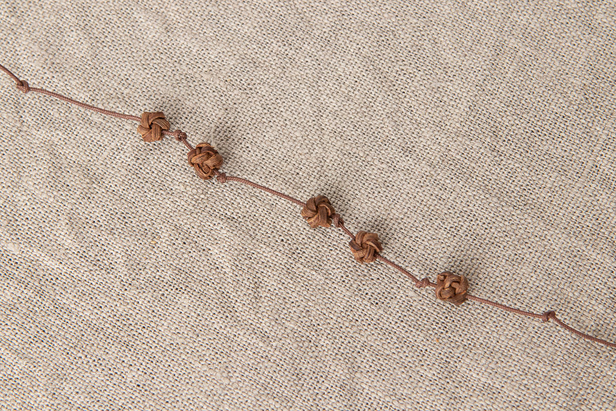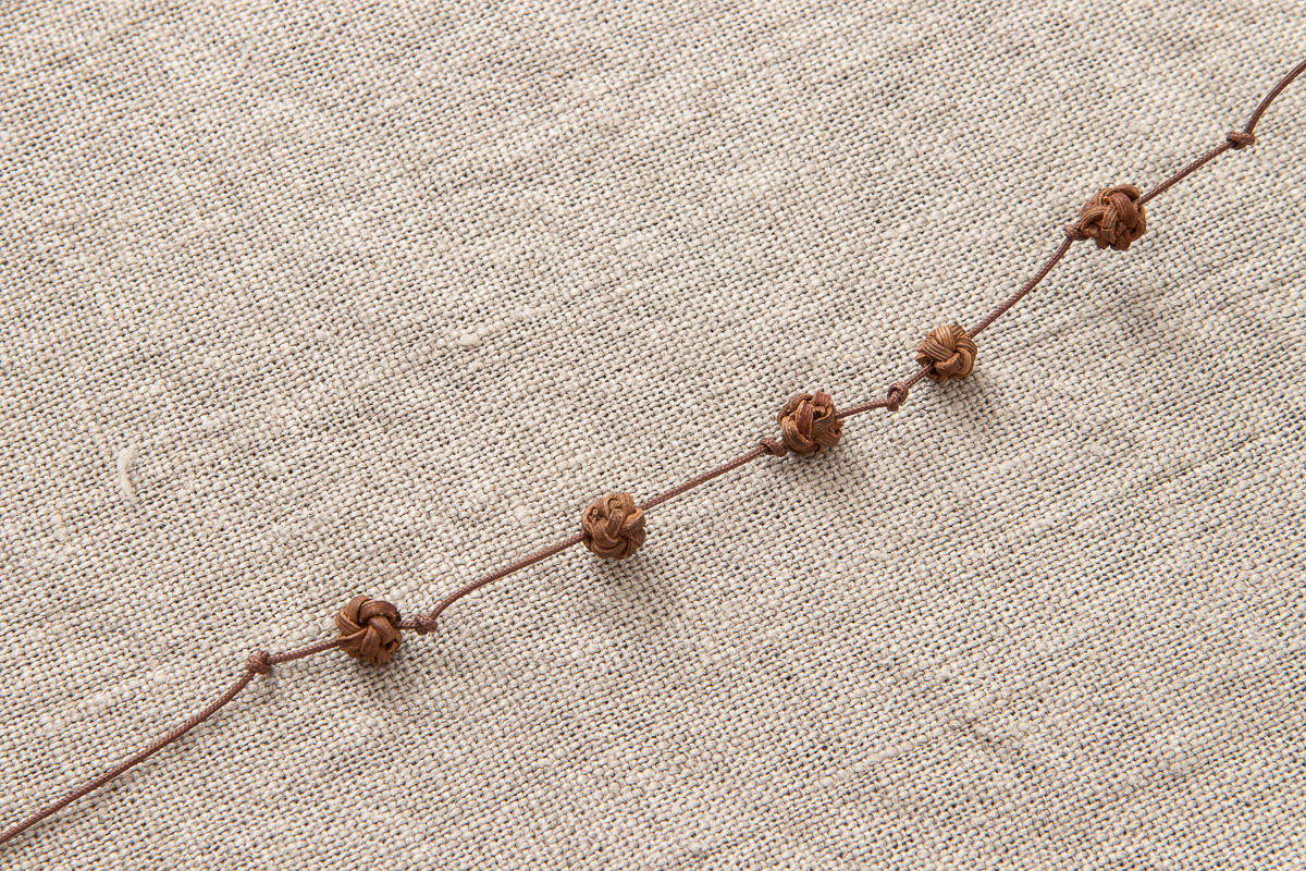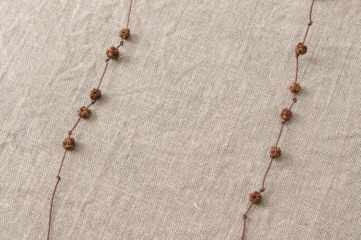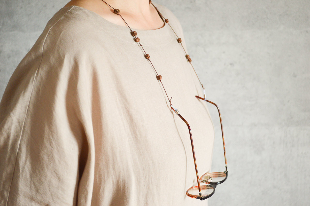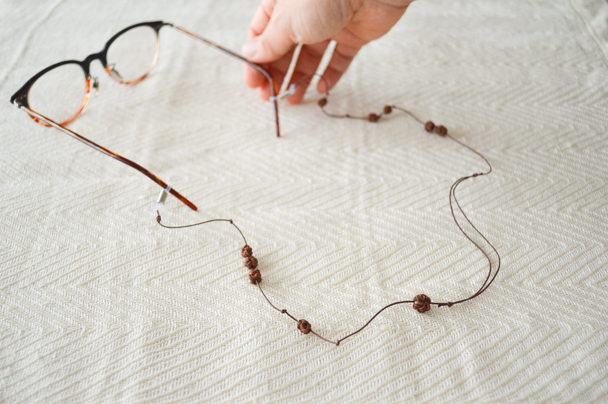こちらは山ぶどうの飾りを施した、首から下げられる紐状のメガネホルダーです。