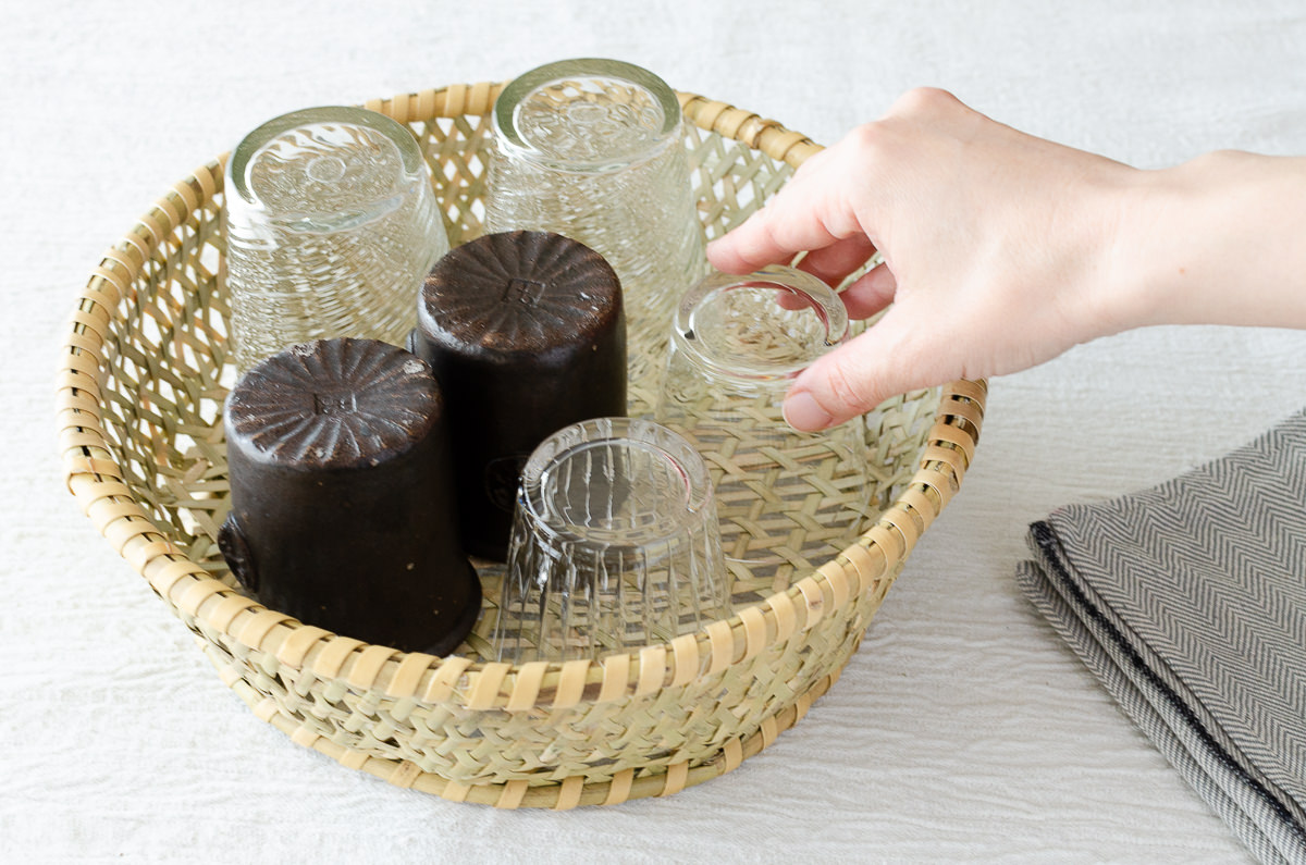 または、よく乾いた器を伏せて収納しておくかご