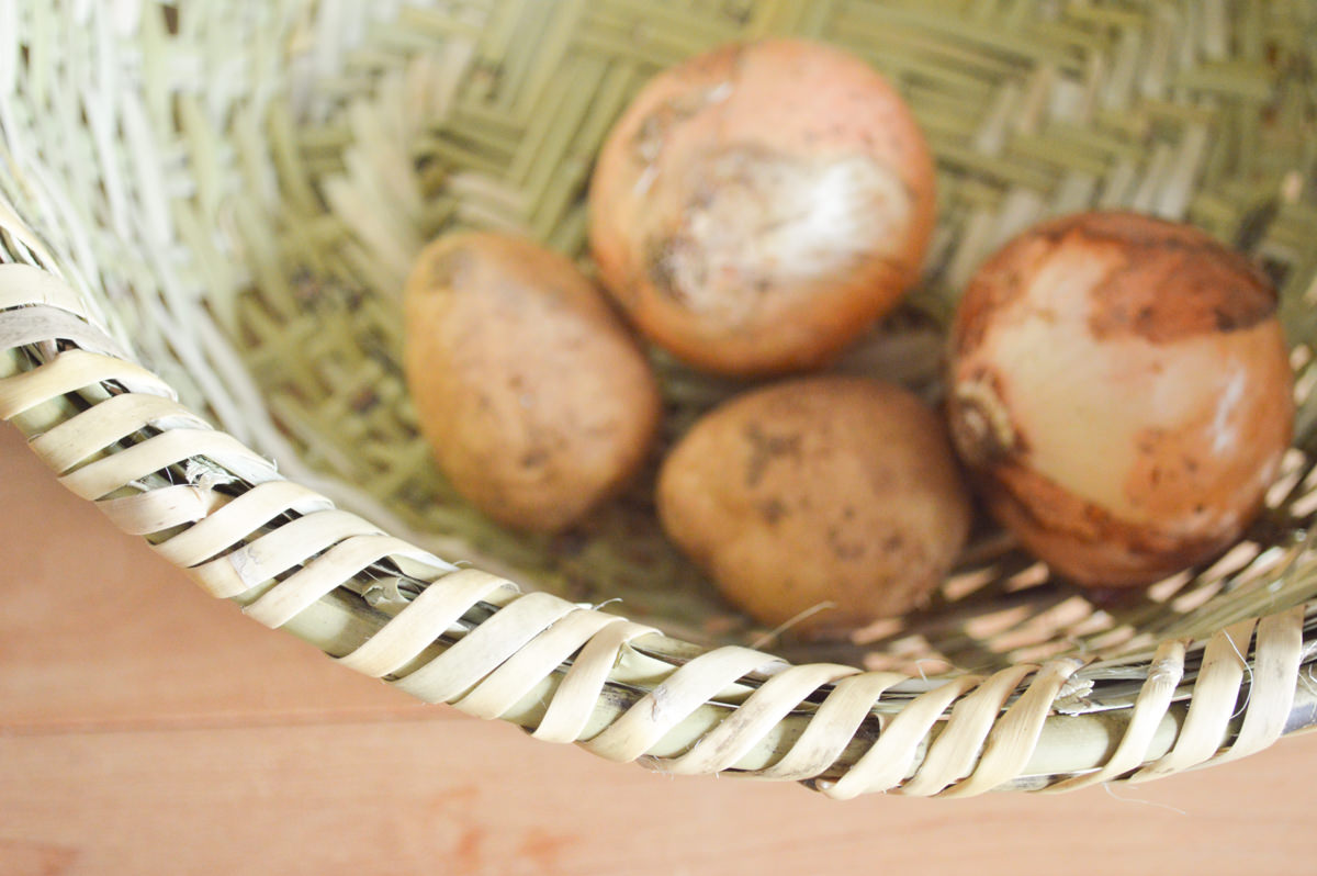 表皮と肉の配分はそれぞれのかごで変わることがありますが、それぞれの風合いをお楽しみください。たくさんの野菜に果物、庭道具の一式などの荷物を入れることができます。