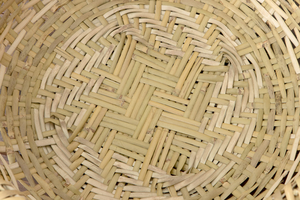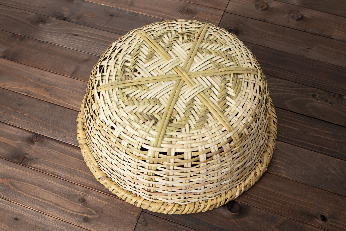 編み目が詰まっているござ目編みという編み方です。こういった外仕事で使われていたかごは、ひごの幅を揃えるなどの手間はかけずに仕上げます。