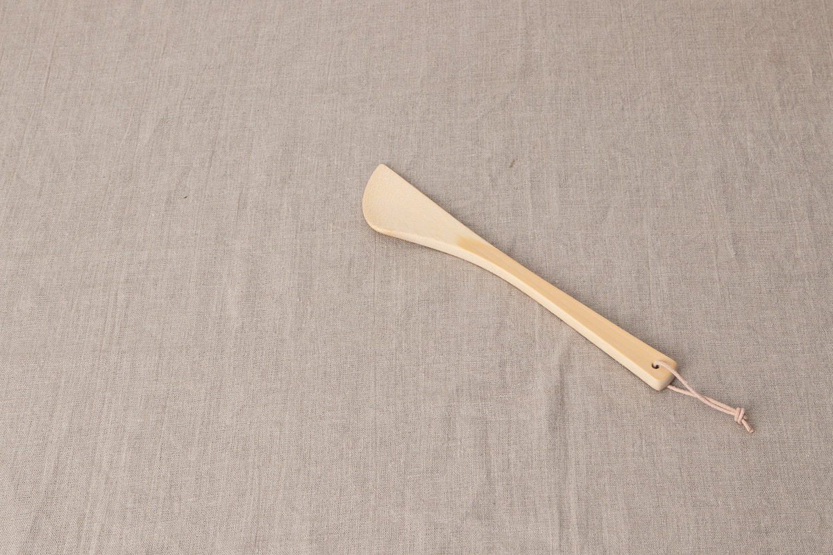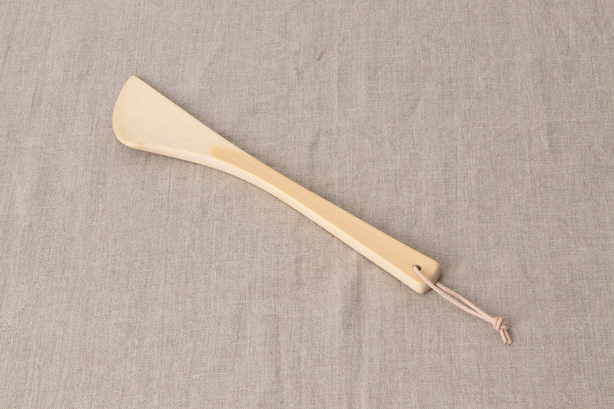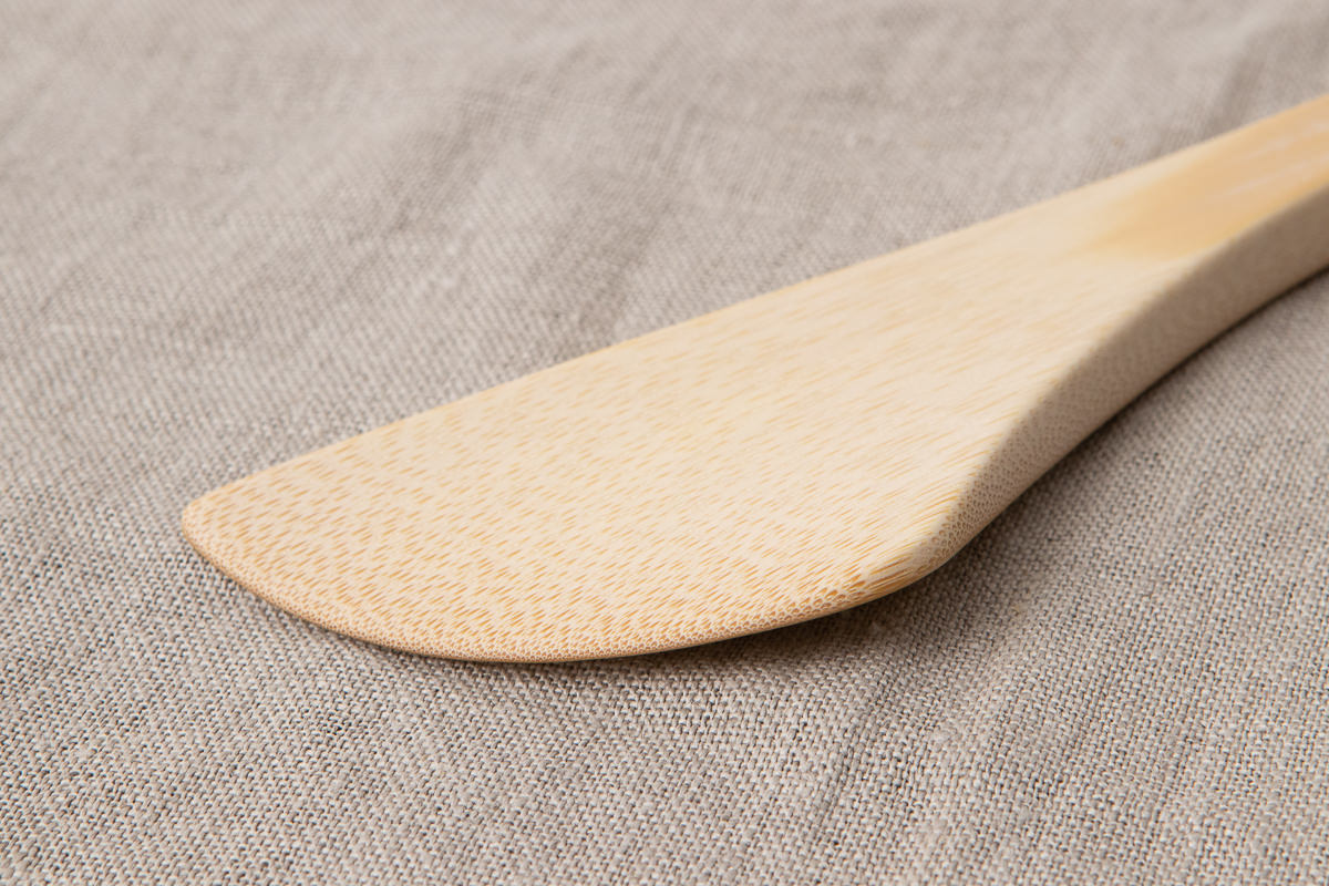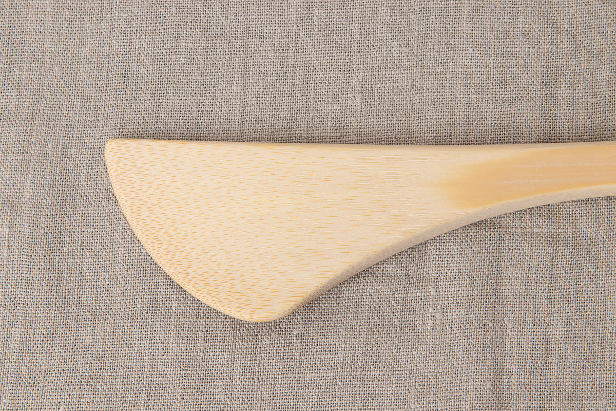 テフロン加工の鍋肌も傷つけにくく、当たりの柔らかい竹のへら。