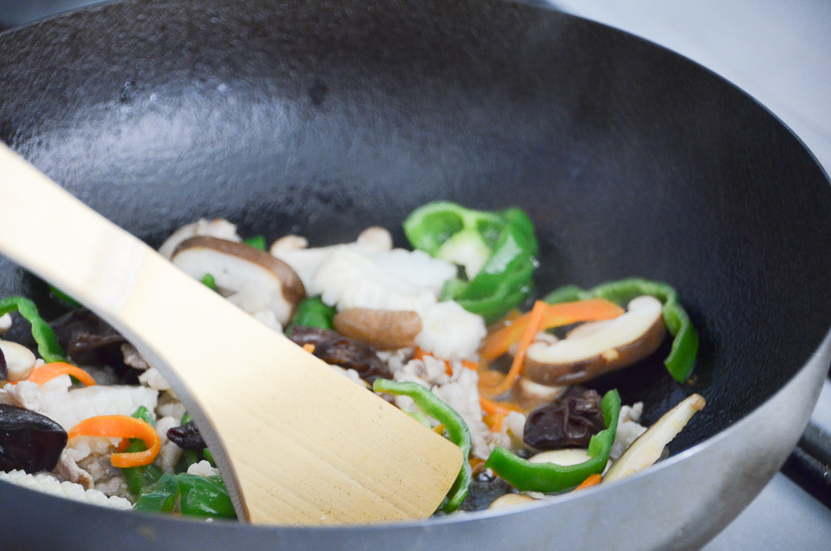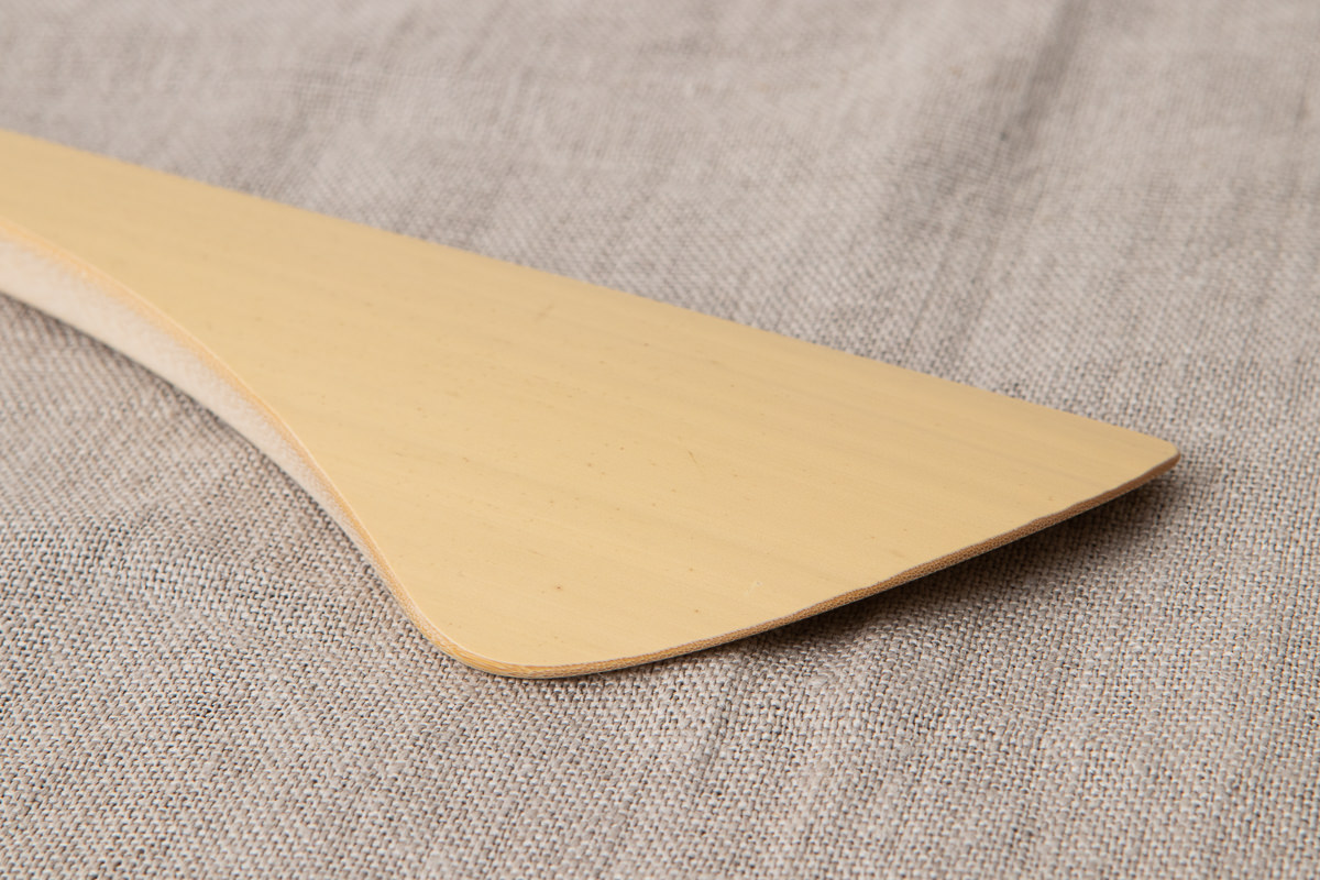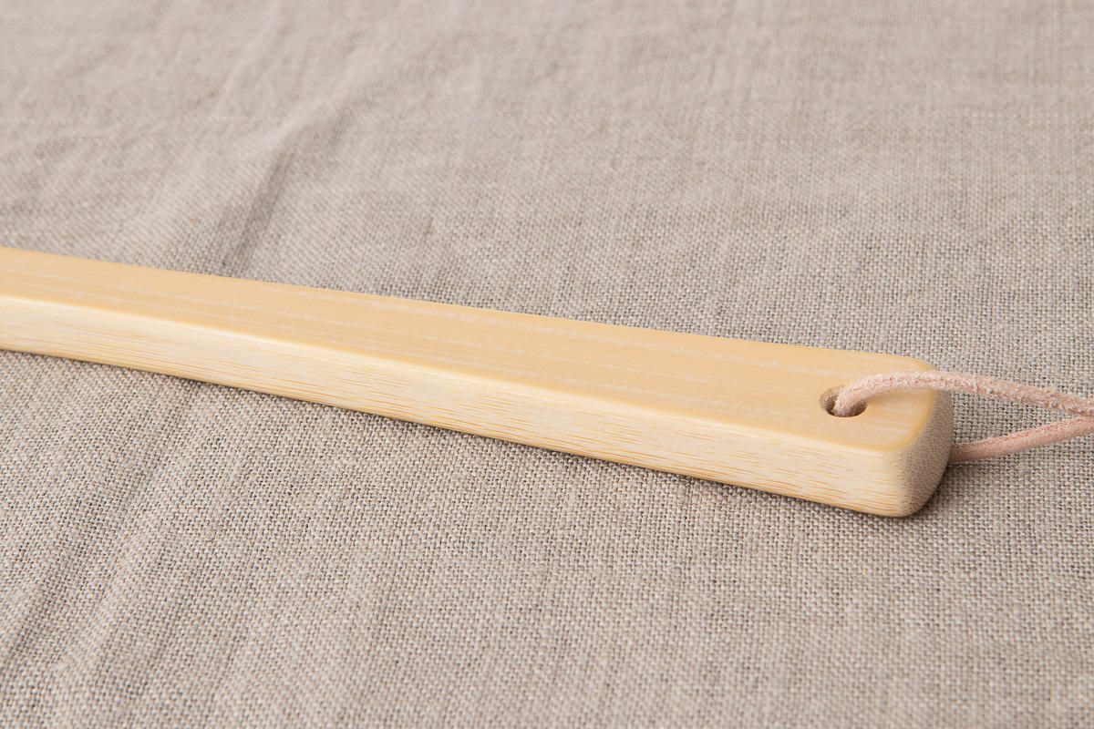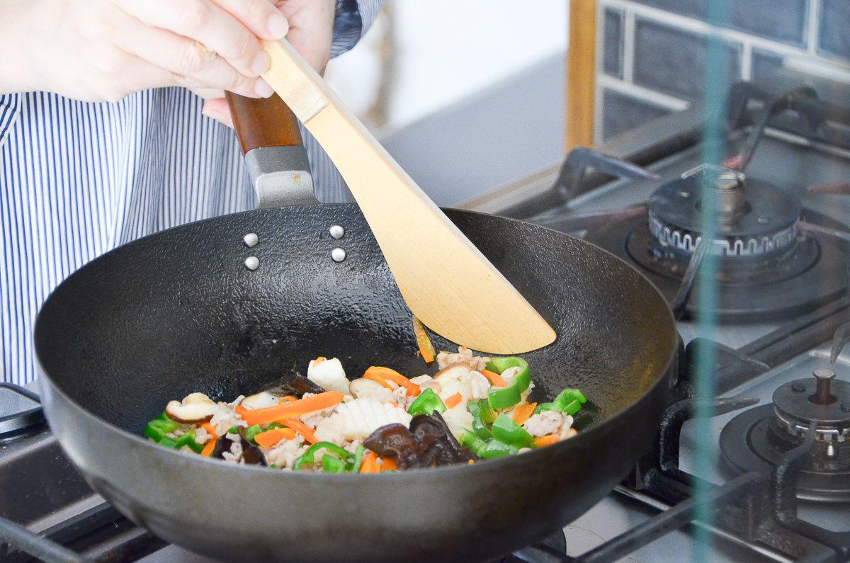 テフロン加工の鍋肌も傷つけにくく、当たりの柔らかい竹のへら。
