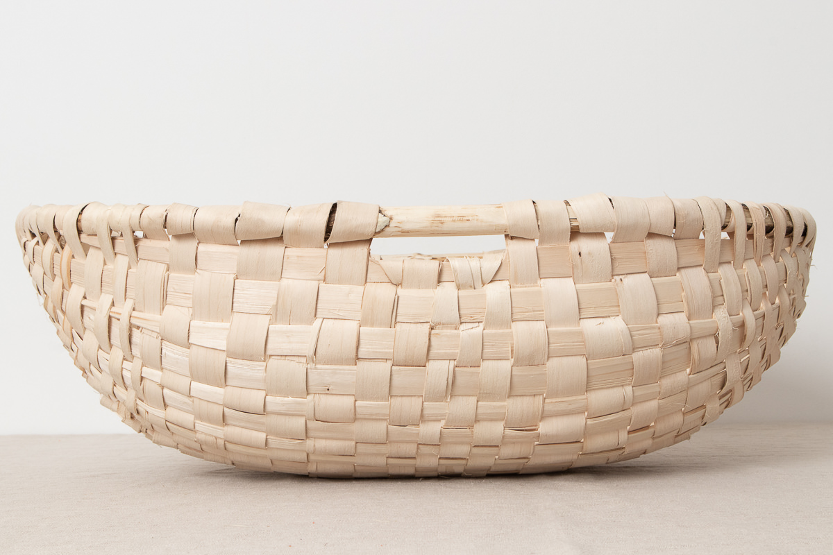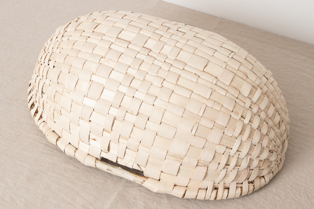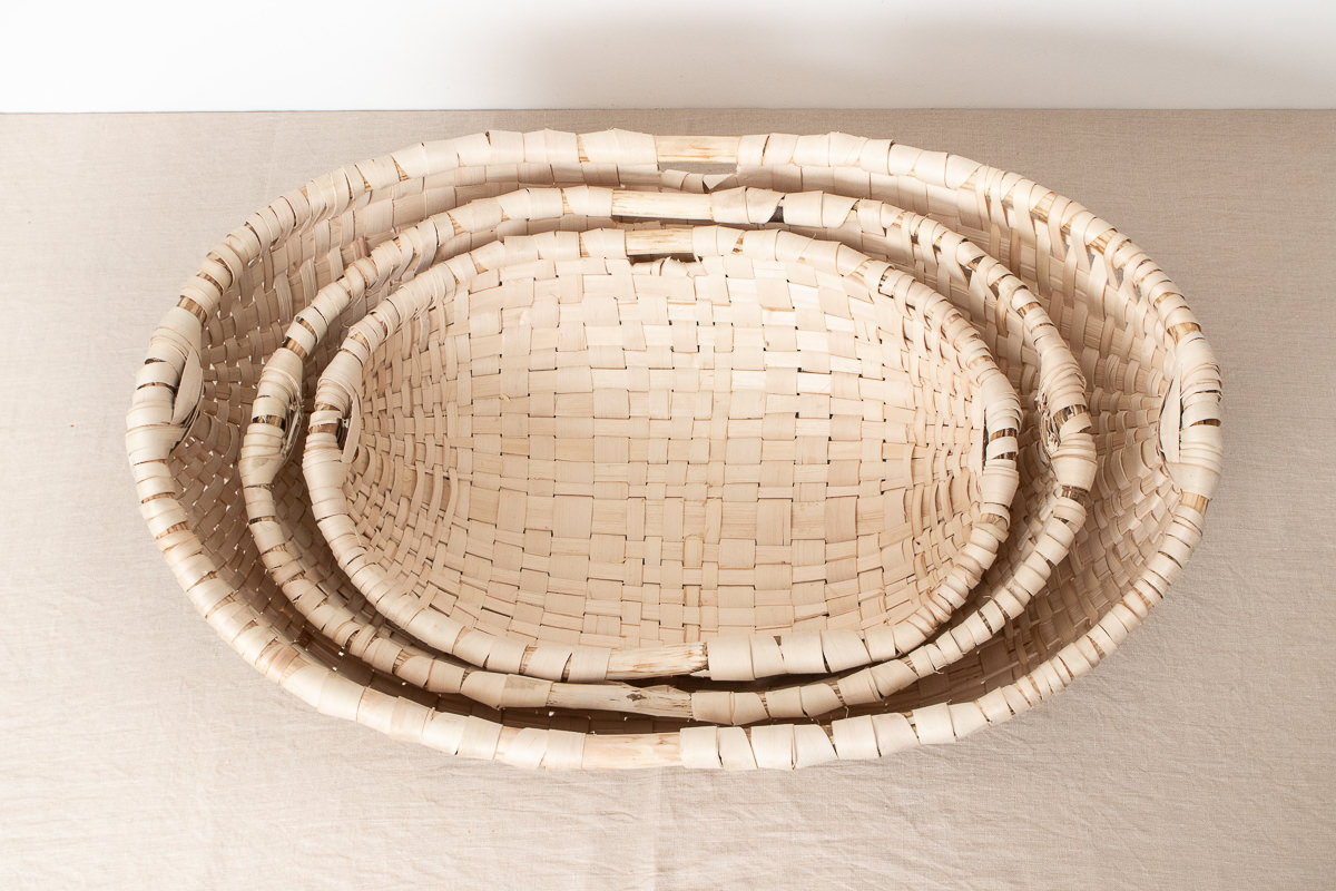 こちらは、ヘーゼル(セイヨウハシバミ)の木から作られた楕円型の大きなバスケットです。ヘーゼルの種子はヘーゼルナッツとしてもよく知られています。