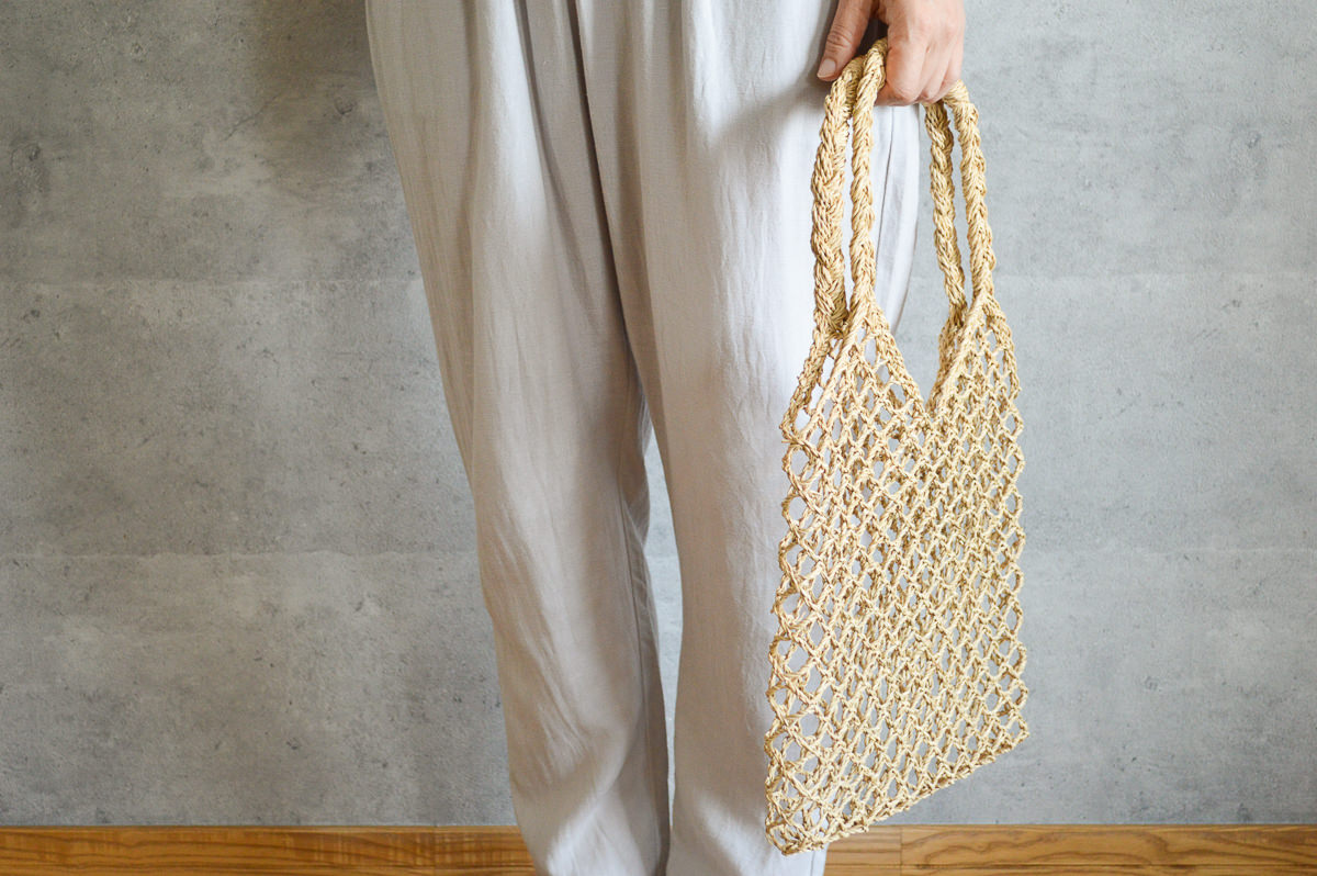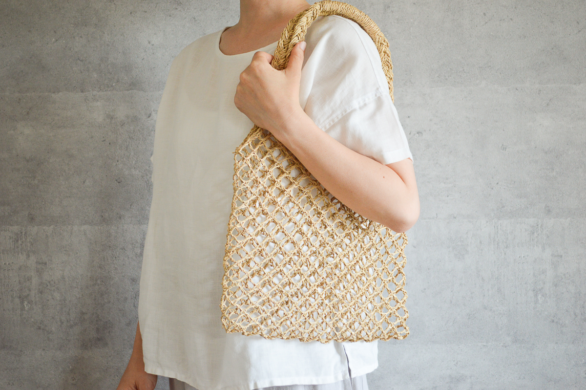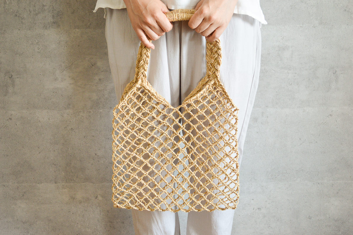 薄型でコンパクト、編み目の開いた涼しげな手提げをご紹介します。