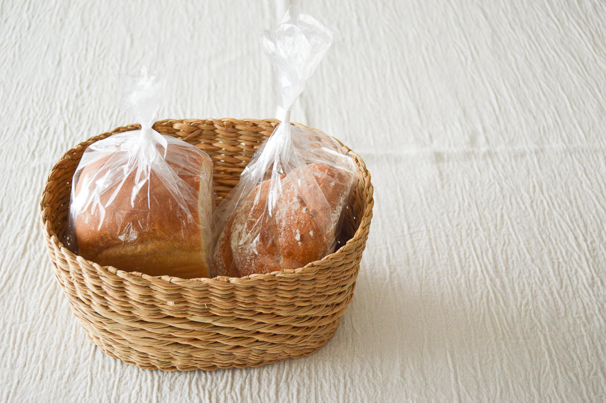 パンのストックかごとしても。手触りも優しく、軽やかなコックのかご。