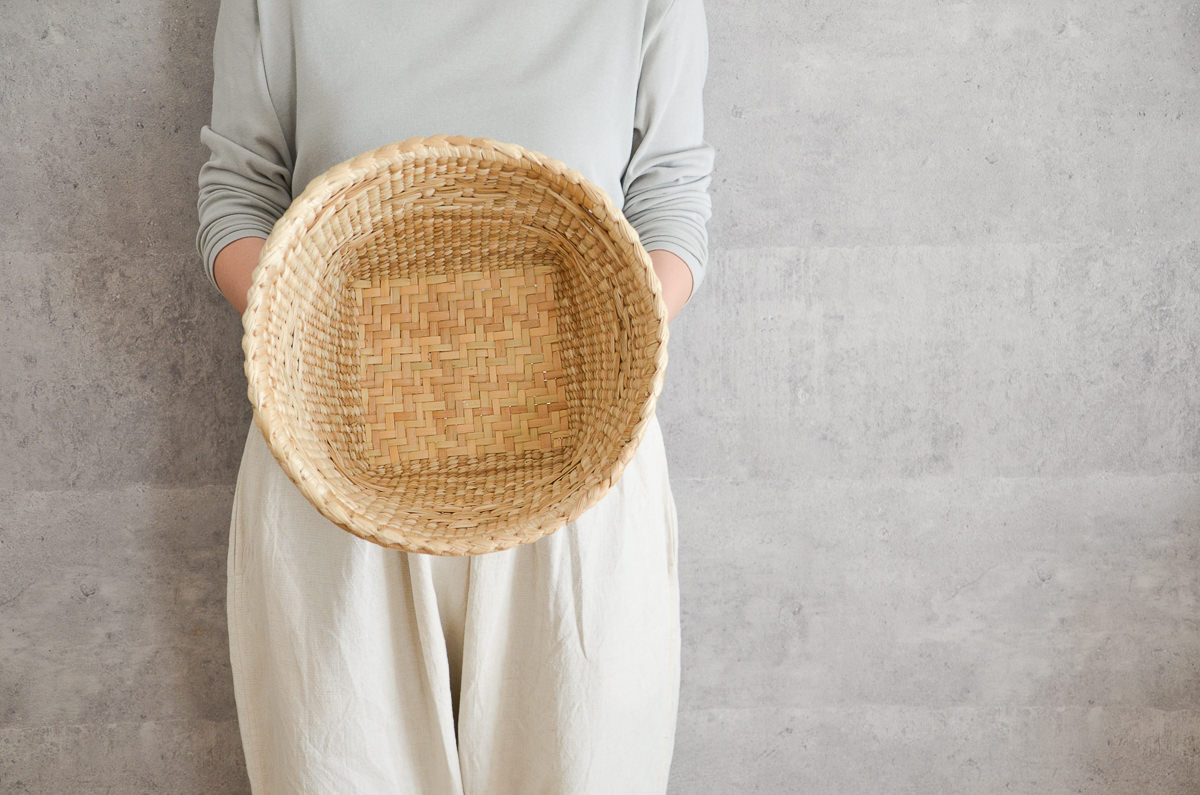 ほどよく深さがあり、使い勝手の良い丸型バスケット。